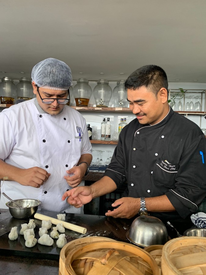 Now more than ever, different types of cuisines are gaining unprecedented interest from patrons in trying new dishes. Students of hospitality learnt how to make authentic vegetarian and non-vegetarian dimsums, signature dish of the hosting restaurant red chilly chicken and picked up the ways infusing gin, all from chefs Sachin and Neeraj Thapa on the field visit to restaurant Ging, on September 1, 2022.