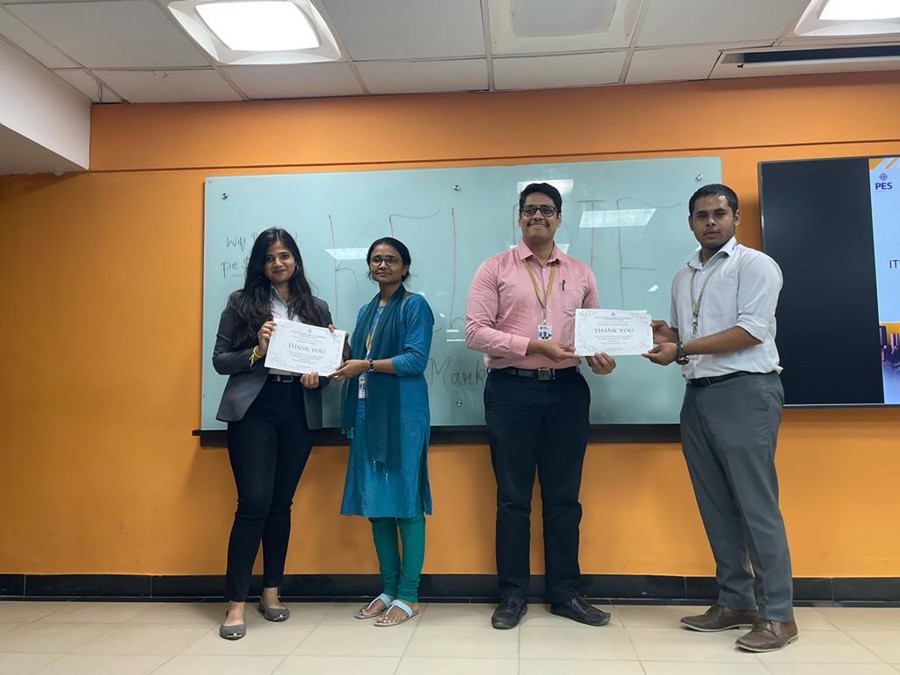The event Re-bourne had eleven teams taking part and preparing reentry strategies for the notional companies which failed to get through in the Indian market. The teams prepared videos and posters and presented their strategies followed by answering questions from the panelists and the audience. Team Poornachandra bagged the top position followed by team Duck Leg and team Phoenix. The contest Re-bourne was held on September 1, 2022, at the RR campus.