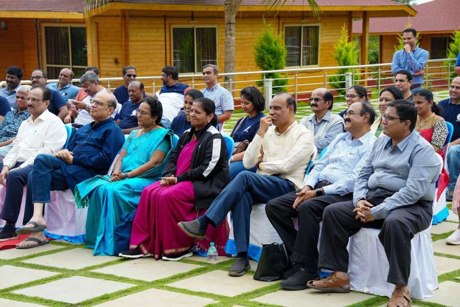 Almost 8 months of preparations culminated on Aug 14th, 2022, Sunday in the picturesque location, Brahmi Wellness Retreat. As part of the preparatory process there were surveys conducted on the type of event, location, photography, transport for the faculty and other nitty-gritties like banners, posters, customized T-shirts, mementos and shawls for the faculty. All these were planned through Zoom calls as the planning committee comprised some overseas alumni as well. Alumni from all the branches – Computer Science, Electronics and Mechanical were reached out and were part of this gala event.