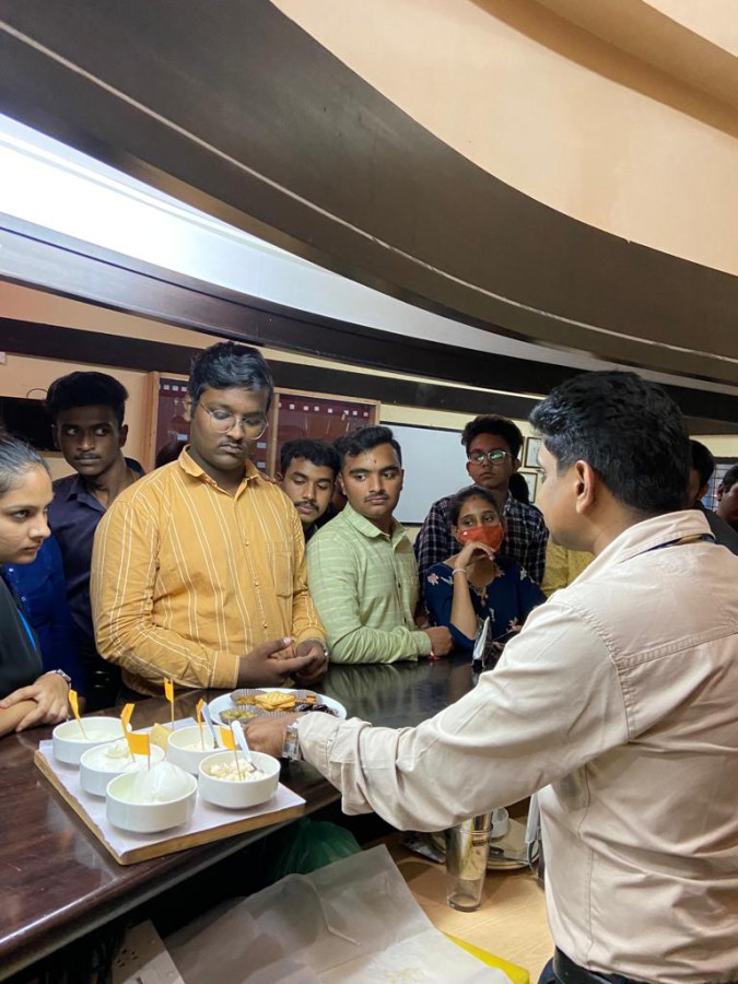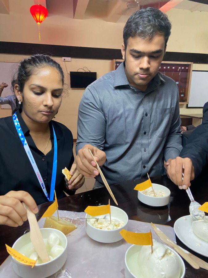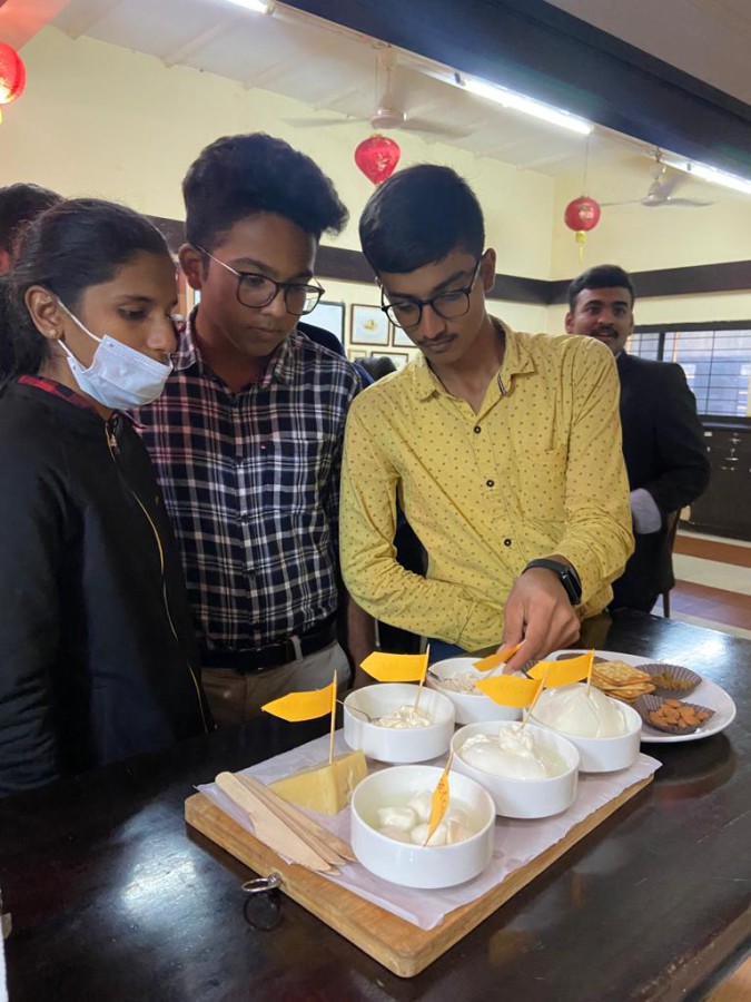 The popularity of the cheese market in India is growing and carries vast untapped potential. Our per capita annual consumption of cheese is less than 200gm, compared to a global average of 7kg per annum. The session on cheese appreciation by Prof. Harish and Prof. Bhavana covered flavor profiles, types and comparison, history and its origin and tasting of cheese along with accompaniments. The cheese appreciation session was organized by the department of BBA-HEM on Oct 14, 2022, at training restaurant in RR campus.
