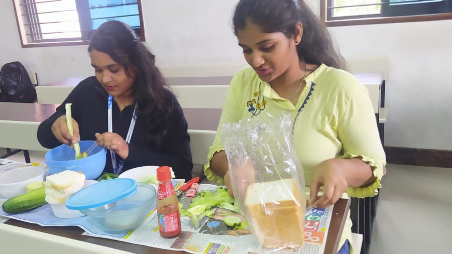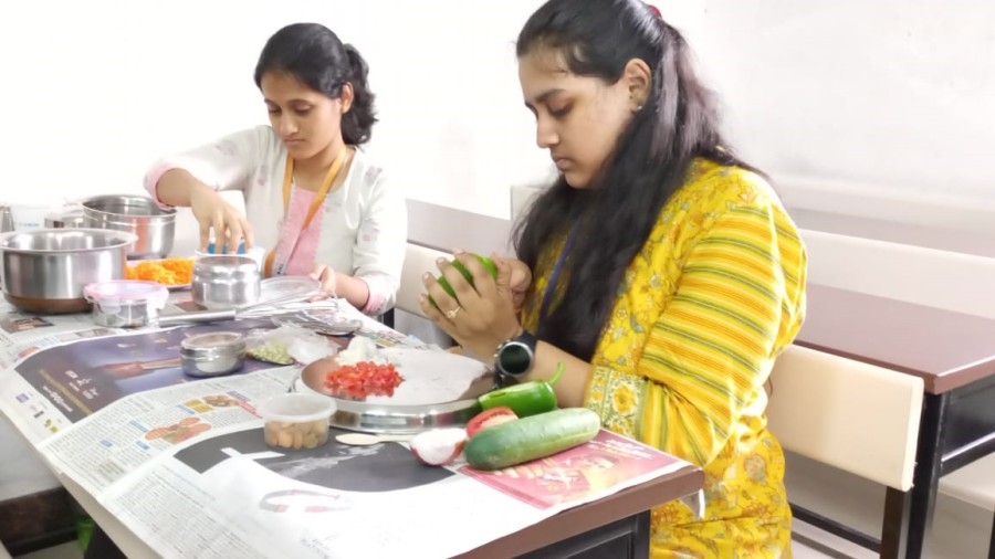 Srishti Mathur won the first prize in the Go green, Eat green culinary contest. Deeksha B R and Heera B and Nisha Kumari and Soniya M won the second and third prizes.The participants were challenged with preparing two dishes based on fruits and veggies within 90 minutes. The preparations were judged on taste, innovation, and presentation. Pakasiddhi, the food club organized the Go Green eat Green contest on Oct 13, 2022 at RR campus.
