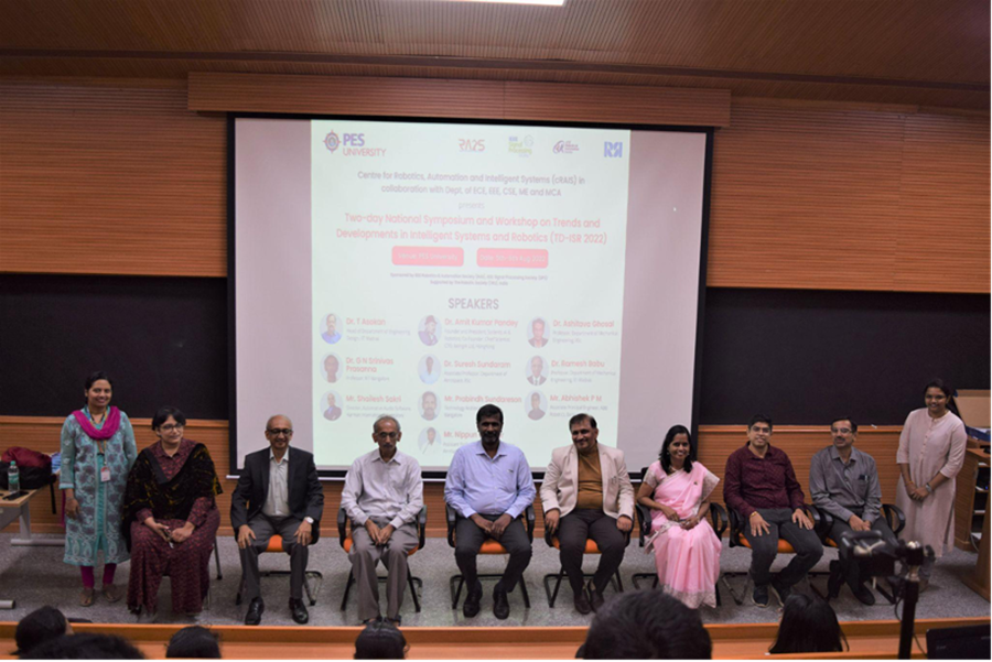 Center for Robotics, Automation and Intelligent Systems (cRAIS) in collaboration with the departments of ECE, EEE, CSE, ME and MCA, conducted a two-day National Symposium and Workshop on Trends and Developments in Intelligent Systems and Robotics (TD-ISR 2022). The symposium was sponsored by IEEE Signal Processing Society (SPS), IEEE Robotics; Automation Society (RAS), and supported by The Robotic Society (TRS), India. TD-ISR’22 promoted the dissemination of research and technological innovation in Robotics and Intelligent Systems. The aim was to provide a lively forum for discussion and deliberation about the current status and future trends in the focus areas of the symposium. The participants included students, research scholars and faculty. The two day event comprised talks by expert speakers in the field of Robotics and Intelligent Systems to appraise the participants about the work being carried out at various academic, research and industrial organizations. A half-a-day hands-on workshop on Robot Operating System 2 (ROS 2) was also part of the event.