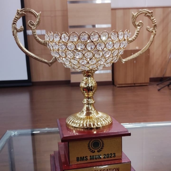 Model United Nations is a deliberation competition in which students play delegates and simulate UN committees. Participants' policy making abilities and report writing skills, along with the analysis of important international documents, events and incidents are tested. Seven of the thirteen member delegation of PES MUN Society, RR Campus won individual awards thereby securing the Best Delegation Award at BMS College of Engineering Model United Nations conducted on January 7-8, 2023.