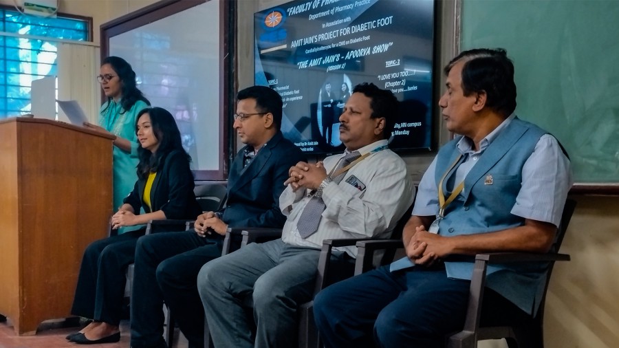 The challenge of managing diabetic foot ulcers is serious in India as our country has the second-largest number of diabetics in the world. Apoorva show- I love you, a series of lectures on diabetic foot and wound care, originally designed by the pioneer and founder of modern diabetic foot surgery of India Dr. Amit Jain. The session focused on the important aspects of overcoming this formidable challenge. The career opportunities as a clinical pharmacist in wound care with special attention on surgical and pharmacotherapeutic management of diabetic foot care were highlighted. The use of antibiotics in wound management as a must-know for clinical pharmacists was underscored. The program was graced by Prof. M V Satyanarayana and Dr. J Saravanan. The Faculty of Pharmaceutical Sciences organized the expert lecture series on understanding pharmacists’ role in diabetic foot care on January 16, 2023, at the HN campus.