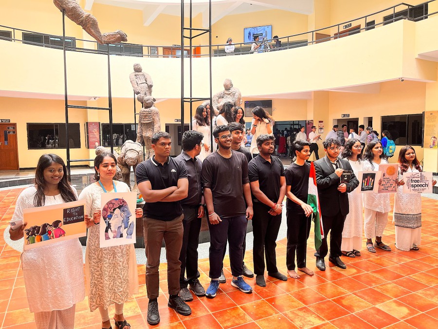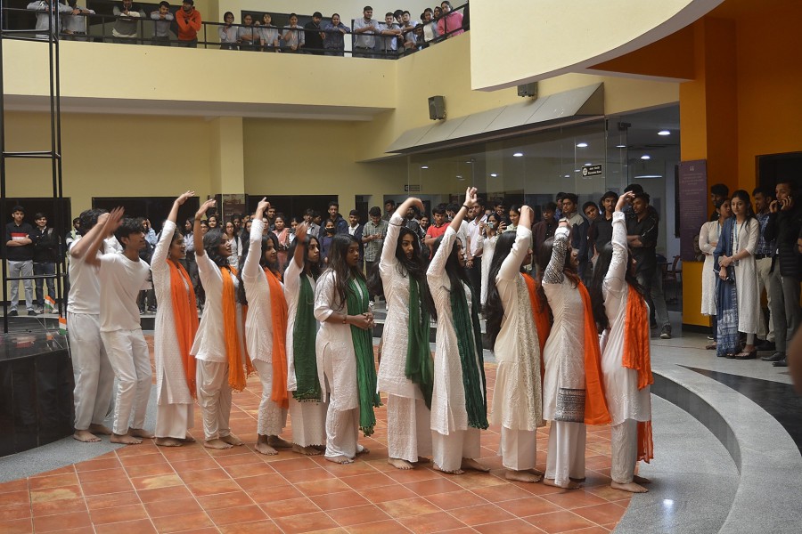 The Department of BBA put together exciting activities in Kalaantrika event to celebrate India's74th Republic Day. The fusion dance performers swayed to patriotic songs. A skit examined the daily lives of seven characters and demonstrated with each one personifying a fundamental constitutional right. A blended contest featured singing combined with mural painting with the common theme of patriotism. In the singing competition Keerthana won first place, Ananya and Pranav won second place followed by Kripa. Pranindha and Krithi C N won the mural competition followed by Aastha Khodaria and Aaditi Jha as runners up. Kalaantrika, Republic Day eve celebrations was organized by the Department of BBA on January 25, 2023 at RR campus.