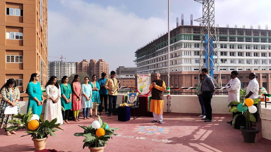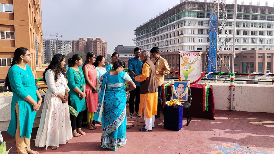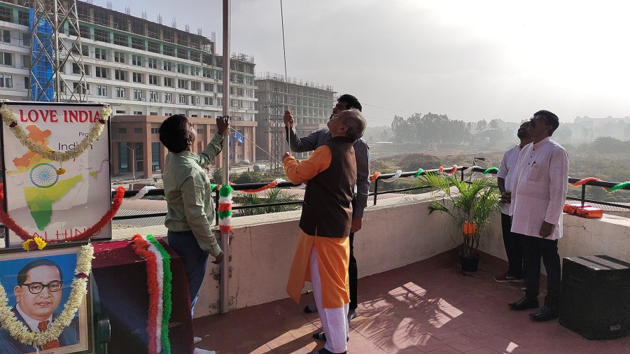 PES University EC Campus has celebrated 74th Republic day. Dr. Subhash S Kulakarni , Principal has hoisted the National Flag and addressed the gathering. Chairpersons from various departments ,Staff and students were present on this occasion.