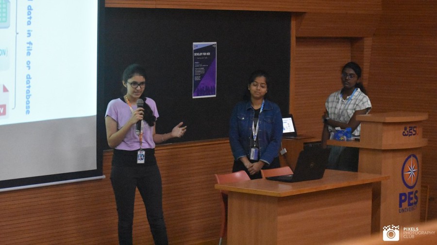 Participants presented ideas and solutions pertaining to the challenges faced by women. In phase one, the submissions were evaluated based on criteria of novelty, relevance, quality, feasibility and impact of the idea. The shortlisted teams presented a business model canvas with video and prototype in the final pitch. Team DevelopHers of Praneetha Kalbhavi, Priyanka Kumari and Nishita Gopi bagged the first prize. Team UpskillForHer of Deepika Indran, Lakshmi Narayanan bagged the second prize. Team Her/She of Shruthi Venkatraman, Shamita M S, Usha Madhavan and Spoorthi Shetty bagged the third prize at Develop for Her ideathon organized by ACM-W PESU chapter during March 4-18 2023, at RR campus.