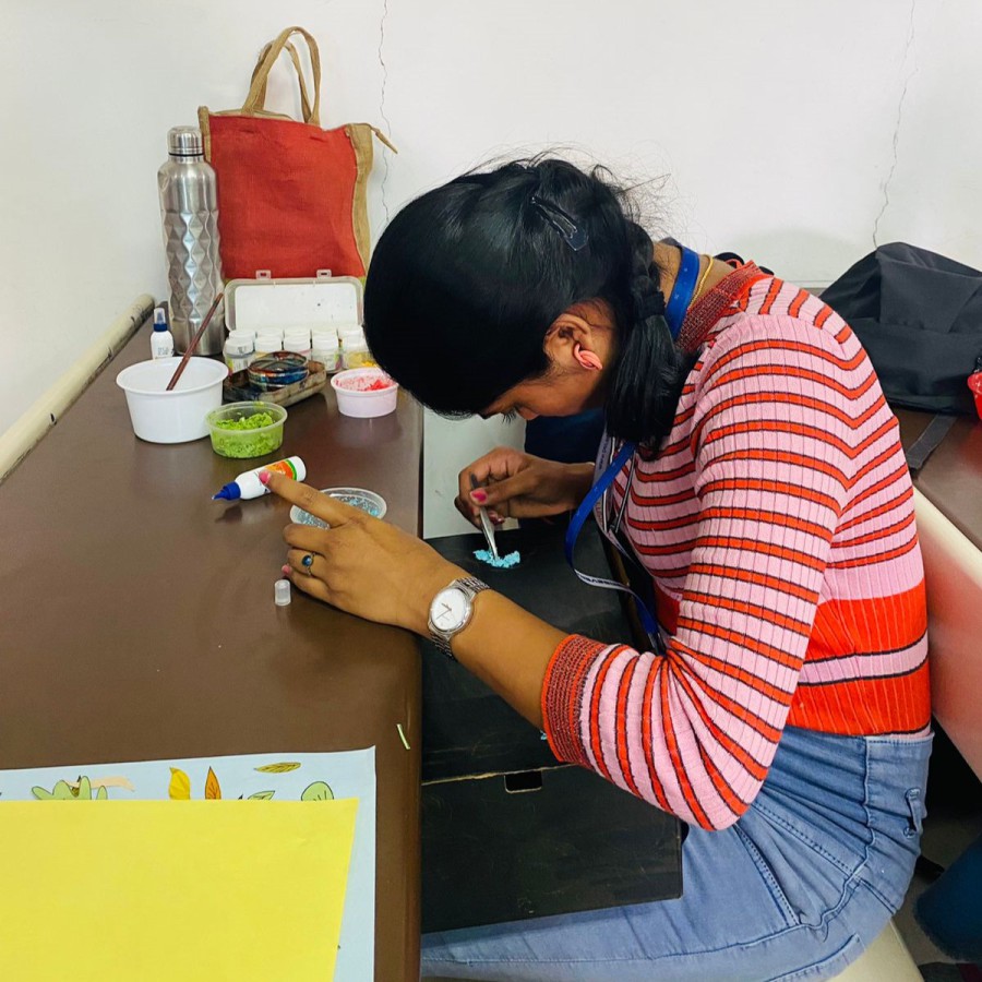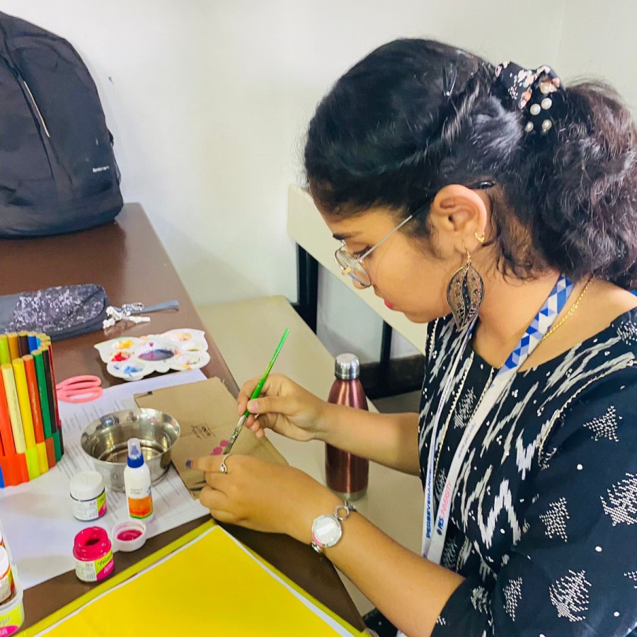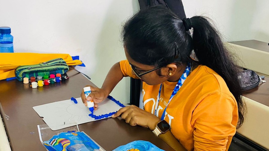 Shreya Verma won the first prize followed by Prerana S and Athula Chandrashekar in Paper Stash Busting contest by creating eye-catching forms using crumbled tissue and paint, organized by Shringaara club on March 23, 2023 at RR campus.