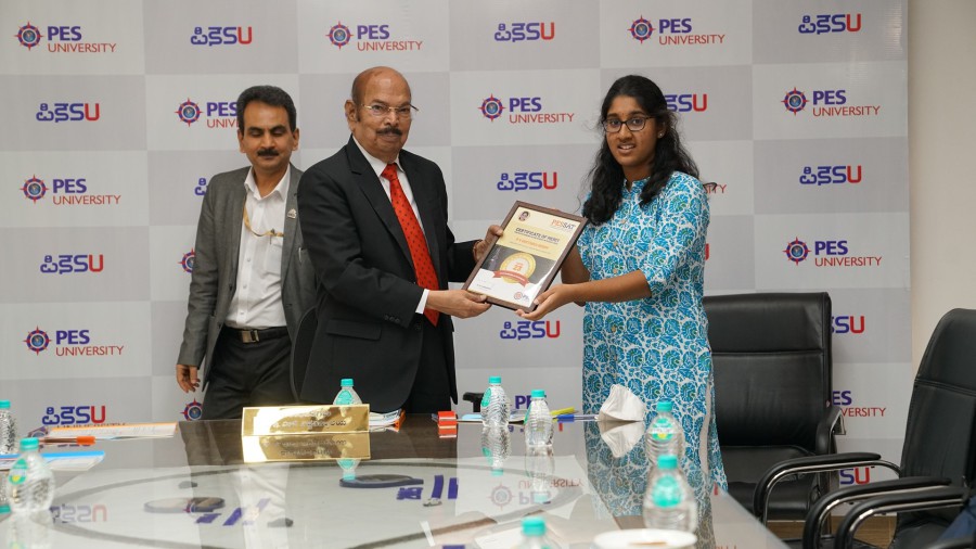 Dr. M R Doreswamy, Hon’ble Chancellor of PES University and President of PES felicitated the top rankers of PESSAT-2023 with appreciation certificates in the presence of their parents, the press and the media on 8th June 2023.