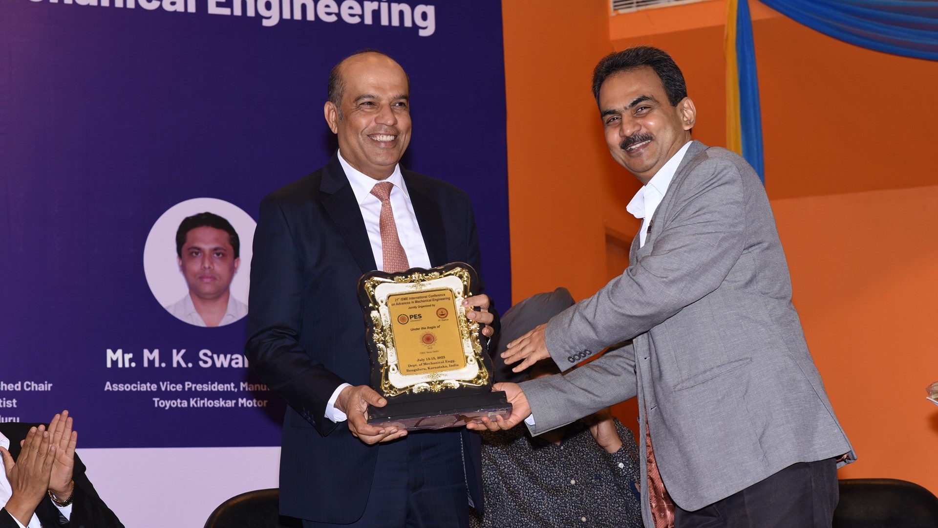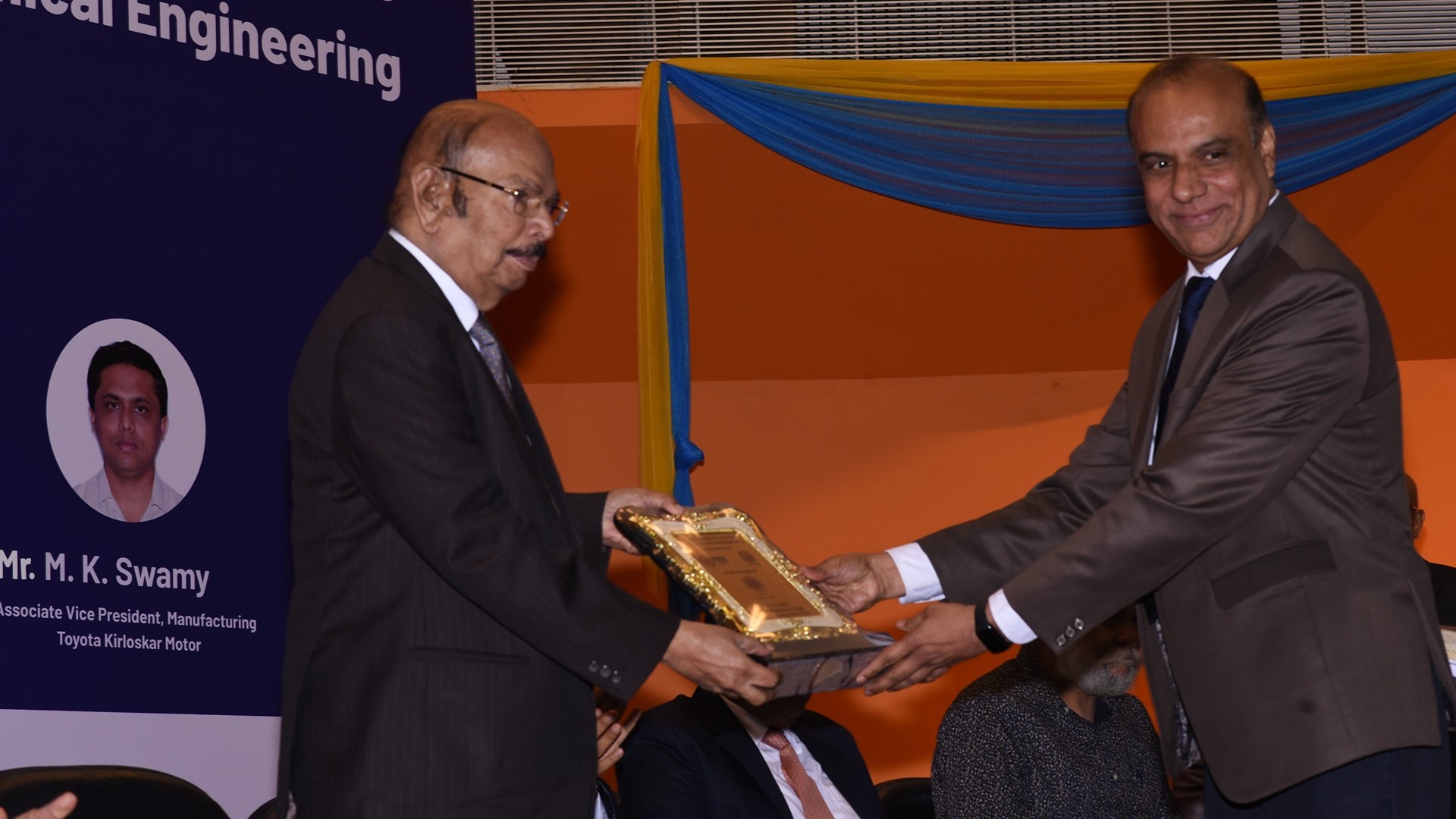 M. K. Swamy, the Chief Guest on the occasion, delivered a presentation about Toyota Kirloskar’s efforts on ensuring employee happiness, technical training for economically poor students, collaboration with colleges, their success in the World Skill competition and their manufacturing prowess at their 100% green energy powered plant at Bengaluru. He also spoke about the research and development of future hybrid engines, including battery-powered plug-in engines, hydrogen fuel cells, self-charged electrification and Toyota’s goal of ensuring a carbon-neutral organization by 2035