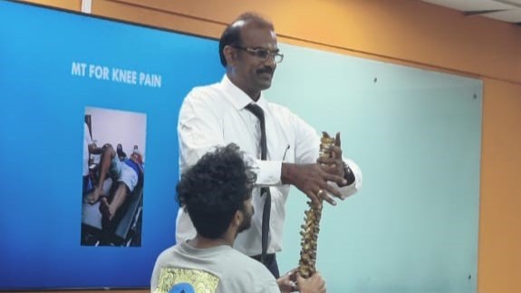 Dr. Pearlson also demonstrated how a cricketer faces hand/limb injury due to serving the Bat ,which leads to spinal issues.