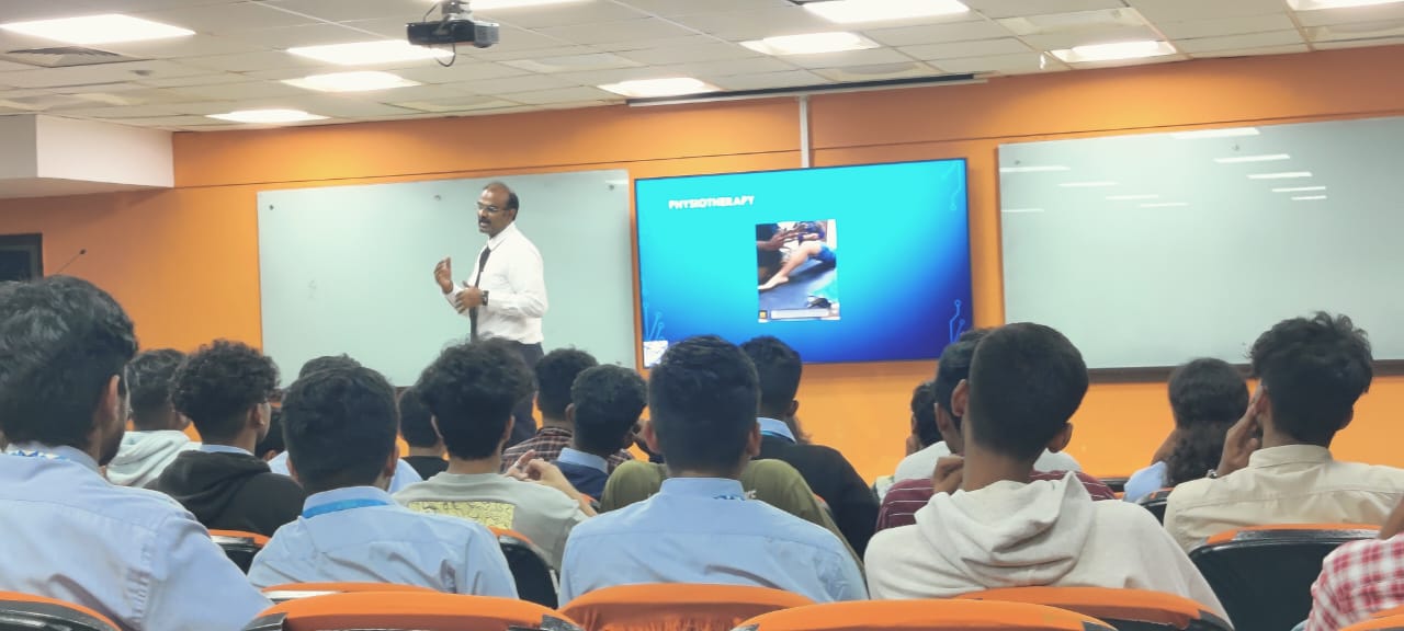 The students of BBA Sports Management had a wonderful opportunity to have attended the Guest Talk on August 9, 2023 by Dr. Pearlson Kanagasabhapathi, Professor & Sports Physiotherapist, Founder of FIMT (2002-till date) (Federation of Indian Manual Therapists), and its mission is to provide advanced training in the specialty area of orthopedic manual therapy for physiotherapists, who has successfully recovered 1,10,000 patients in the service of 25 years.