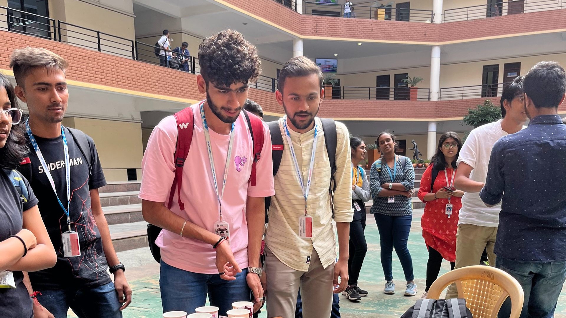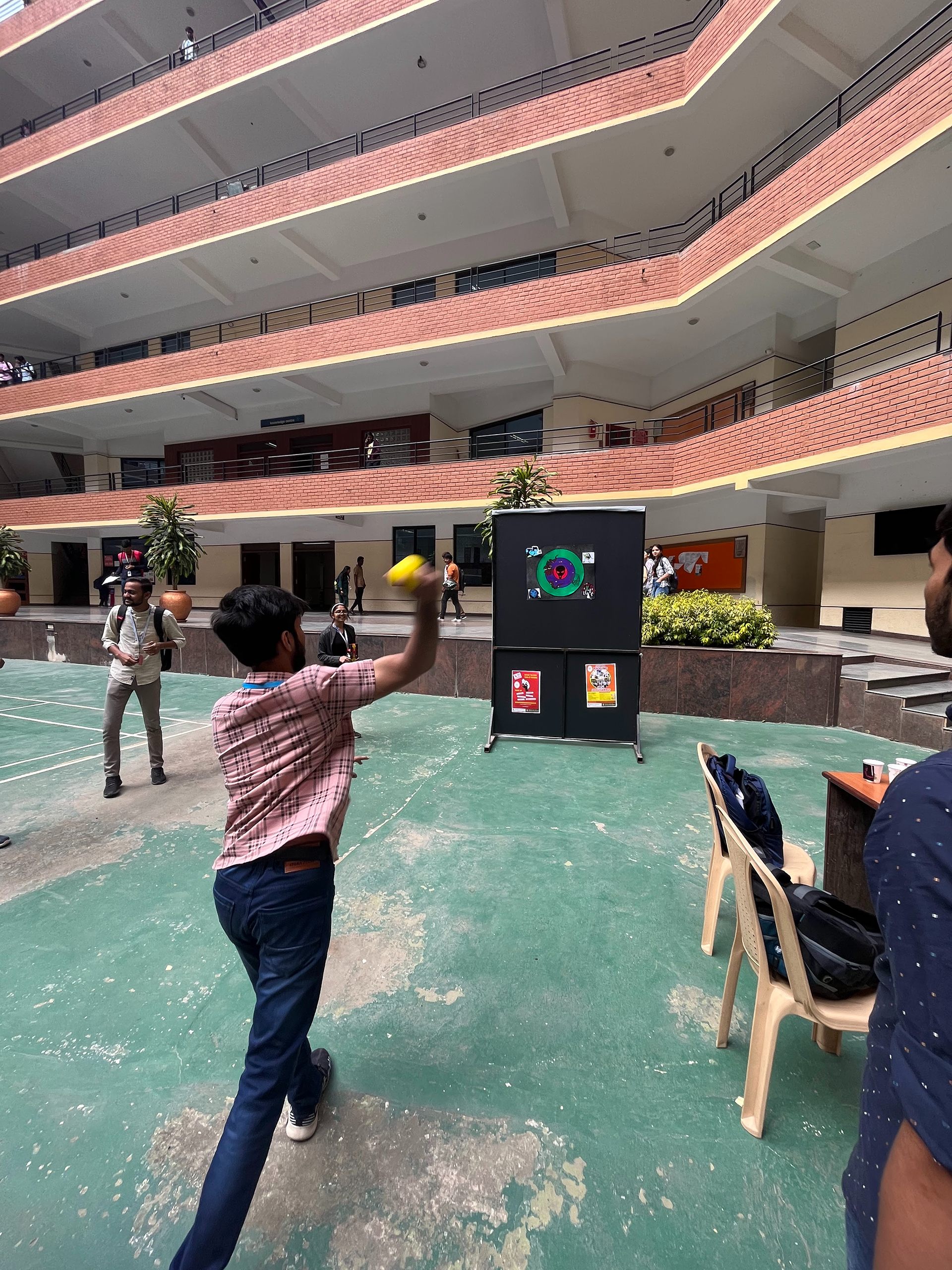 with an astronaut floating in space as the background symbolising peace, harmony and positivity was the challenge in Post-it Pallette game. The participants had to throw a ping pong ball into the Cup of Change with bad aliens on them from famous movies to score points. The event was organised by Equinox Club at EC campus on August 17, 2023.