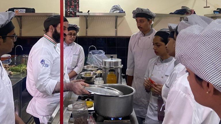 Kashmir is home to a sophisticated art of cooking that has evolved into a distinctive cuisine. Chef Rahul Wali drawing from his rich experience in this unique culinary art shared recipes, methods and techniques for imparting that special flavor while keeping in mind the basics of tasting before serving, using ingredients of the best quality and mise en place which is preparation of dishes and ingredients before the beginning of service. The workshop by expert chef Rahul Wali was organized by the department of HEM on August 23, 2023.