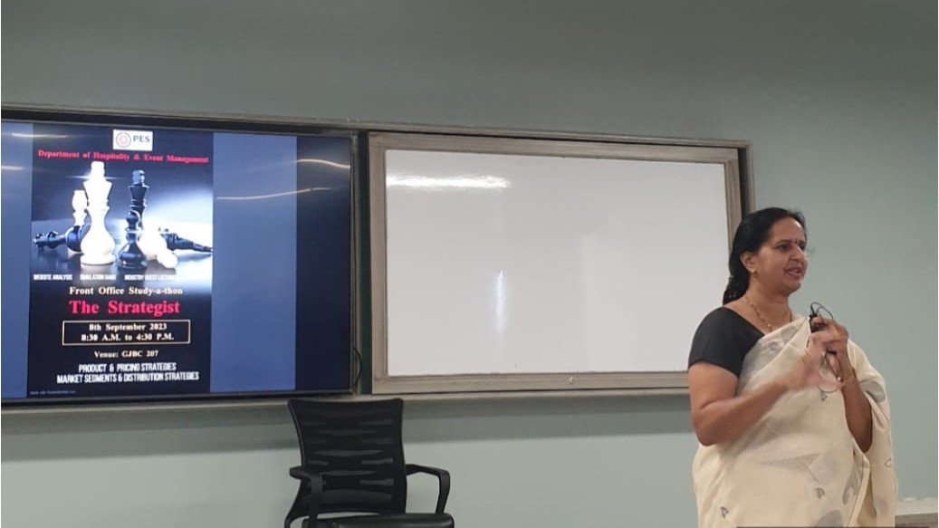 The hospitality industry is a constantly evolving sector with new products and services being introduced regularly to meet the ever-changing consumer demands to stay ahead. The studython covered product and pricing strategies of 5 star hotels through website analysis; market segments, distribution channels and rate parity. Mr. Gerrit K. Thomas, Sr. Principal Business Consultant – Marriott Hotels, USA, Mr. Swapan Das, Front Office Manager, ITC Fortune JP Hotel and Mr. Sumit Desai, Revenue Manager, Grand Mercure at Gopalan Mall elaborated on the topics with real world examples. The study-thon on hospitality product strategies was organised by the department of BBA HEM on september 8, 2023 at RR campus.