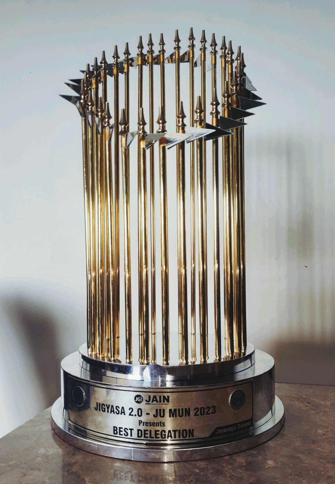 PES MUN Society won the Best Delegation Award at Jigyasa Model United Nations Conference 2023. 21 members of the delegation were declared victorious, which qualified the team for the Best Delegation Award, which was seventh time in a row. The MUN conference was held at Jain University from September 7-9, 2023.