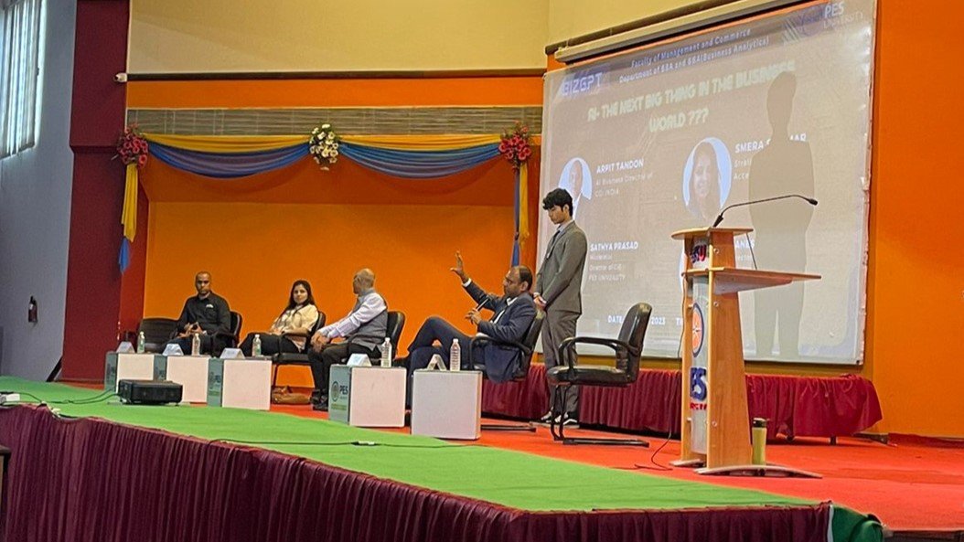 The fest not only captured the essence of cutting edge technology but also provided a dynamic platform for students from varied backgrounds to showcase and hone their competitive spirits. The week commenced with an enthralling dance performance by the students of BBA from Kalaantrika, the cultural club. The intellectually stimulating week featured the eagerly awaited BIZ-GPT the business and management event with the compelling theme of AI Integrated in the Business World. Merchant Matrix, the entrepreneurship club hosted the event Enrigue in which students immersed themselves in a unique fusion of entertainment and industry relevance. The entrepreneurial guessing game, featuring AI-generated baby pictures tested participant’s memory and business acumen. Strategic jigsaw puzzles challenged problem-solving skills while fostering teamwork and critical thinking through the assembly of brand logos. The logo recognition segment prompted students to recall brands and tested their memory skills. Crafting prompts for AI image generators provided a creative exercise, allowing participants hands-on experience with the dynamic capabilities of artificial intelligence. Incorates, the Business Communication Club, set up an AI Photobooth in Tech Park that was open during the break hours. The booth served as a platform for students to capture AI-themed pictures and reminded them of the growing influence of artificial intelligence in our daily lives. Avyana, the IB club tested the combination of memory prowess and physical agility with two engaging games. Mega-Mind challenged participants to test their memory acumen within a tight 45-second window, as they matched nations and flags. BigFoot required participants to match their limbs to cards on the floor depicting specific palm and foot patterns. Eco Frame Fusion, an event by iSocial, the CSR club tested participants’ ability to integrate AI editing tools to enhance their work, while focusing on environmental themes. Probe, the media club, orchestrated a captivating event blending innovative thinking and the harmonious integration of AI tools in fostering collaborative problem-solving. Participants engaged in decoding visual representations using the innovative AutoDraw AI in the first round. In the second round, participants delved into a realm of riddles, testing their wit and deductive reasoning within a time constraint. The culmination of the event saw teams analyzing evidence to unravel a thrilling murder mystery. Green Peace, the eco club, hosted Eco Enscape which began with groups of participants ranking various items based on their carbon footprint. Qualifying teams proceeded to embark on an exciting treasure hunt, deciphering clues to unveil the hidden treasure. Teams had to utilize their creativity and innovation to repurpose the found items into a best out of waste creation. The final segment involved teams presenting their transformed treasures to a panel of judges, showcasing both their environmental awareness and artistic skills. The panel Discussion on The Next Big Thing in the Business World featured esteemed members that included Arpit Tandon, AI Business Director of CGI; Smera Kumar, Strategy Consultant; Ganeshkumar, Director at Rakuten; and Sathya Prasad, Director of CIE PES. The panel delved into the ethical considerations and practical applications of AI and Machine Learning in shaping future careers. The panelists highlighted the pivotal role of Machine Learning, in processing vast datasets efficiently—a crucial skill for aspiring business professionals. They spoke about how the integration of Machine Learning into business education is paramount, given its ability to enhance decision-making processes and provide valuable insights. Kelpie, the marketing club of the BBA department organized Hush n Hustle: From Hushed Whispers to Silent Strategies showcasing their expertise in marketing dynamics. The event commenced with the intriguing Jingle Jam, challenging participants to decipher brand jingles while immersed in loud music, fostering strategic whispers among teammates. The Innofusion round elevated the challenge, tasking teams with crafting marketing plans for peculiar combinations like Burger King and baby diapers and presenting before the panel of judges. People’s Partner conducted the event Word Play. In the Bingo round, participants, in pairs, called out random letters and letters present on their boards were struck off. The top eleven players to achieve five letters in a row advanced to the second round. In the second round, titled Would you Rather, participants faced two management-related scenarios, requiring them to make rational decisions, showcasing their managerial acumen and spontaneity. The Department of BBA and BBA Business Analytics organized the management week from November 6-10, 2023.