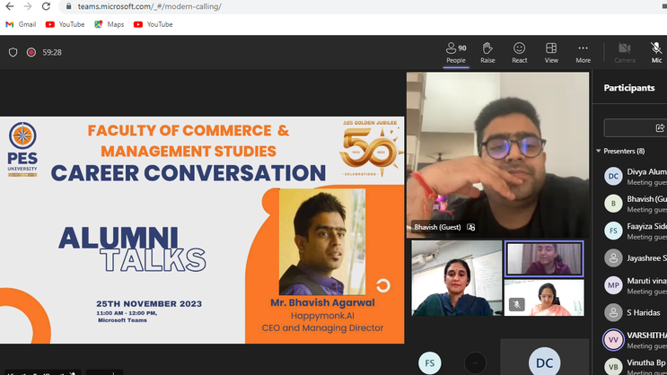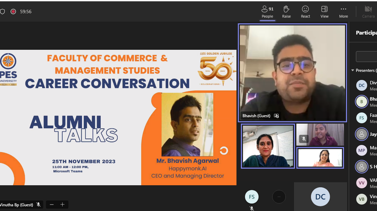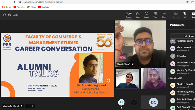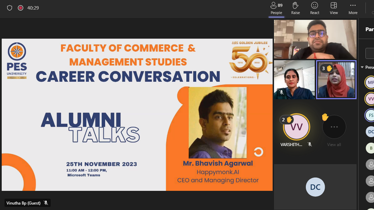 The event provided an opportunity for students to gain insights into the career journey of alumni Mr. Bhavish Agarwal on building a career in interior design business. He shared valuable insights, particularly on struggle during initial days, overcoming failures, challenges faced and importance of soft skills and setting clear goals. The online interaction with Mr. Bhavish Agarwal was organized by the Faculty of Management and Commerce on November 25, 2023.