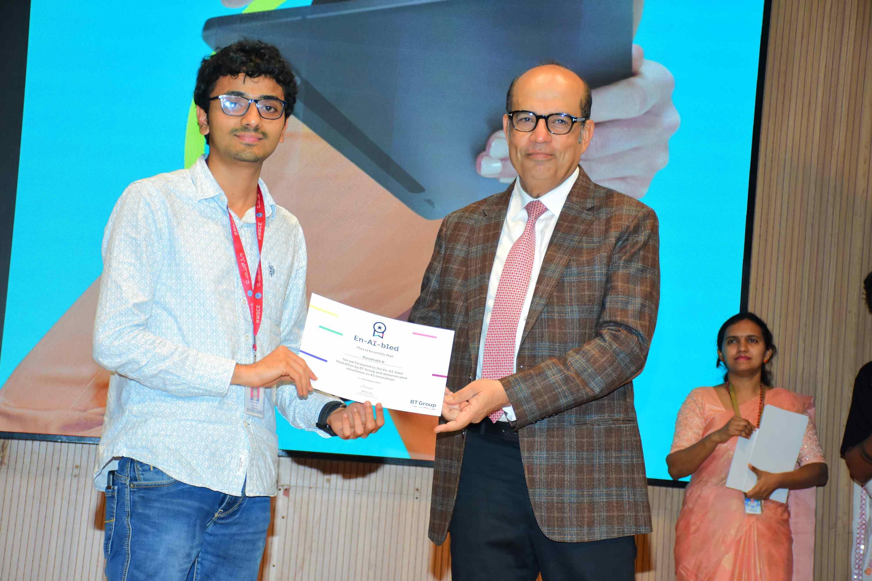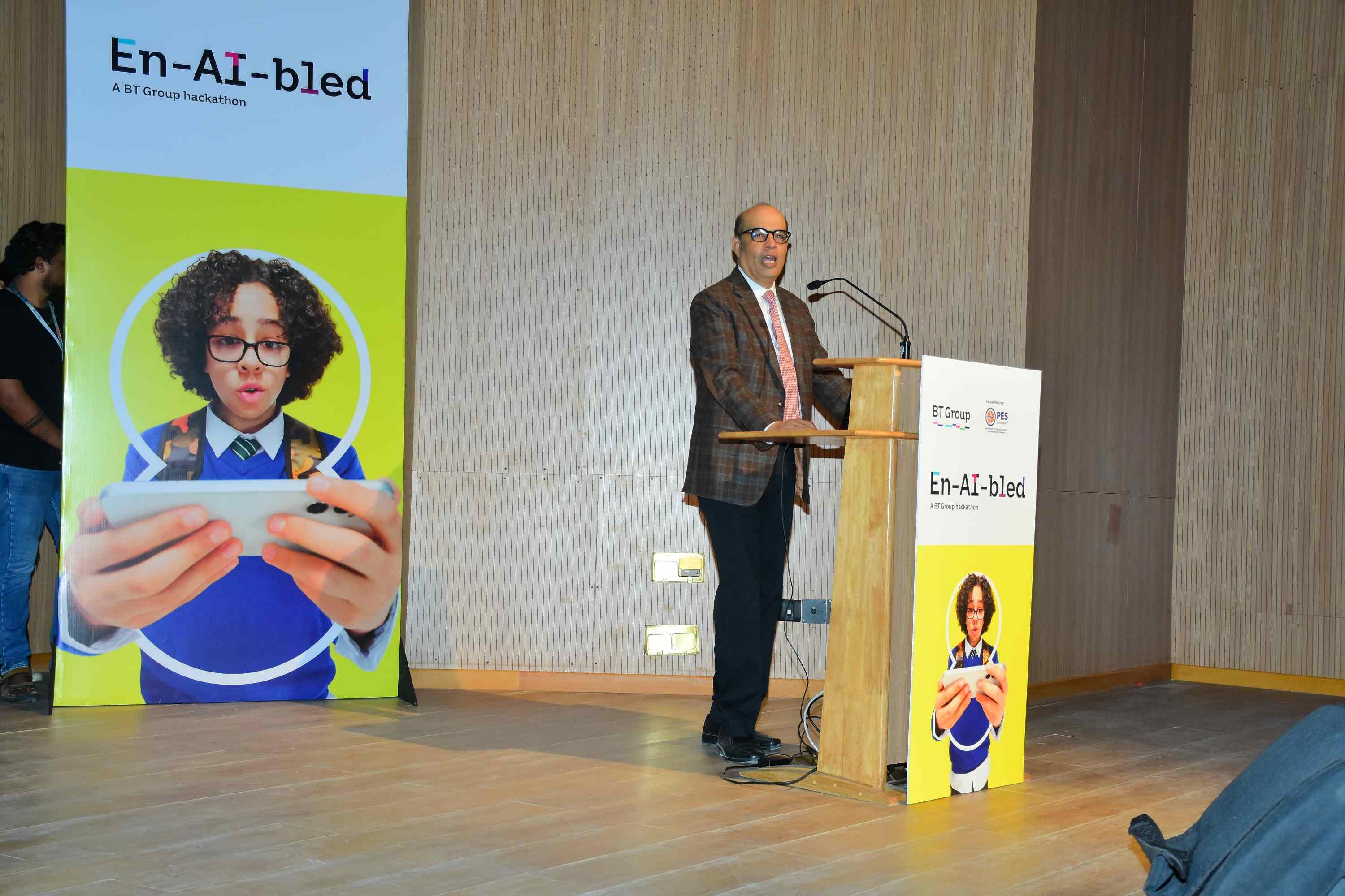 PES University hosted "En-AI-bled," a 36-hour hackathon organized by British Telecom (BT) Group that unfolded on December 2nd and 3rd, 2023. This collaborative initiative brought together students, technology enthusiasts, and industry leaders to explore innovative solutions in the realms of digital identity services, AI-powered marketplaces, and innovative delivery methods.