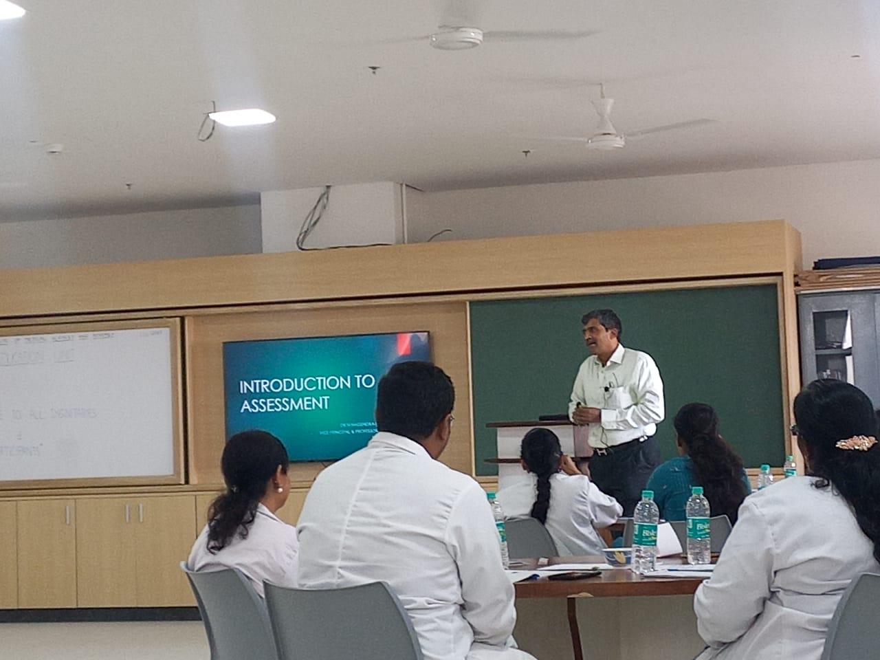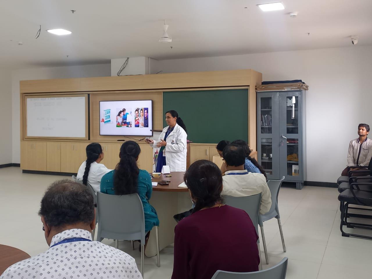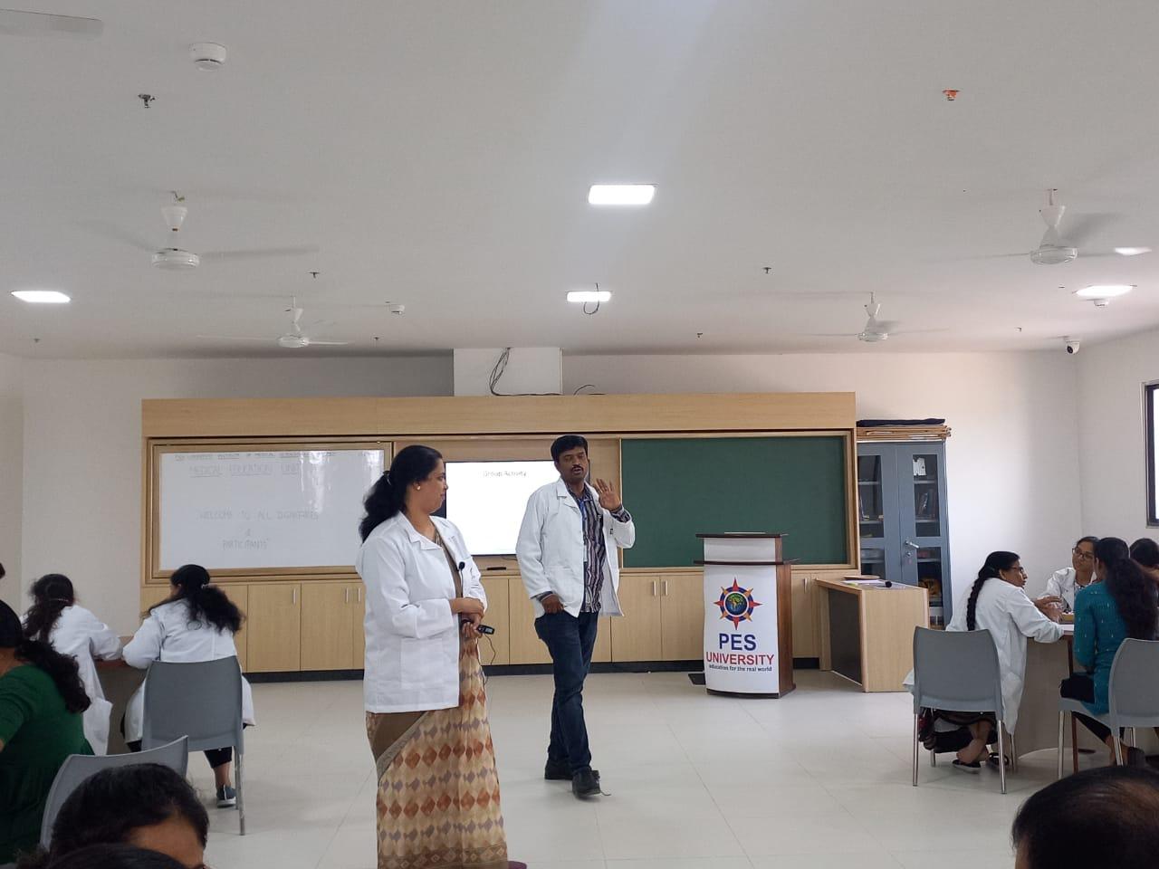 The orientation programme covered a wide range of topics related to competency based medical education (CBME). This included learning domains, principles of learning, teaching learning methods, developing objectives from competencies, selecting appropriate teaching learning methods for learning objectives, attitude Ethics and communication (AETCOM) skills, and assessment in CBME. Dr. Nagendra Prasad N in his introductory remarks spoke about the importance of formal training in medical education technology for training medical students. Dr. Shyma P shared insights into the domains of learning and its progressive levels, identification of predominant domains in each competency. Dr. Vijaya S elaborated on identification of appropriate large group teaching method and its size depending on the session objectives and how to make large group teaching interactive. Dr. Raksha K Hebbar highlighted the variability in size of a small group based on learning domain and objective. Dr. Anjali, explained the method of developing objectives for a given competency in the specific phase of the course with hands-on exercise. Dr. Prakash R spoke on the need for explicit teaching of attitudes, ethics and communication skills for the present generation of student doctors and the proposed modules for different phases of the course, the possible methods for their implementation. Dr. Nagendra Prasad N talked about the role of assessment in learning, methods of assessment and importance of feedback as part of continuous assessment. He also analyzed the different approaches in traditional assessment methods and competency-based assessment and their outcomes. The faculty orientation programme on medical education technology was organized by MEU in association with the Curriculum committee of PESUIMSR for the teaching faculty on December 1, 2023.