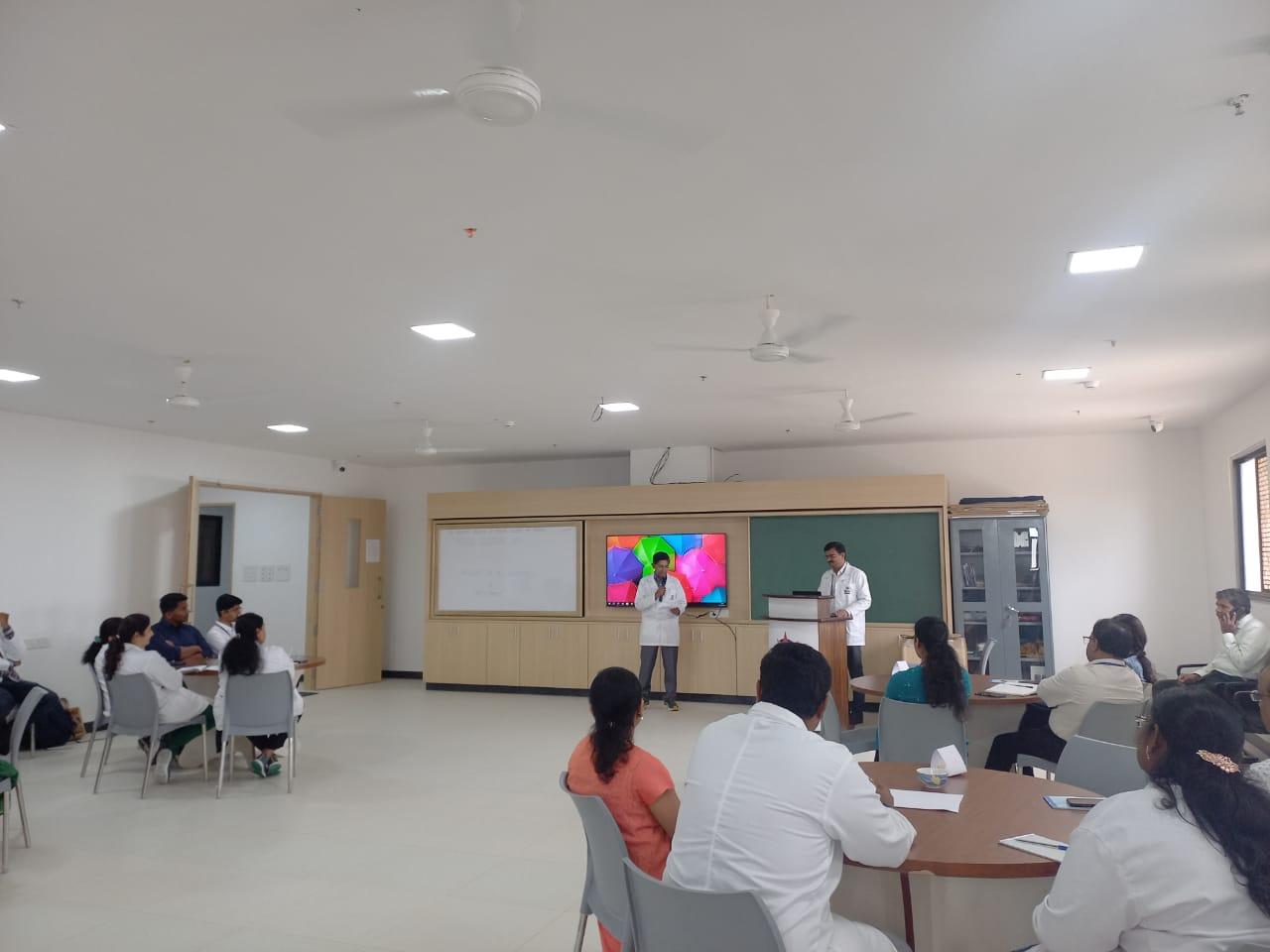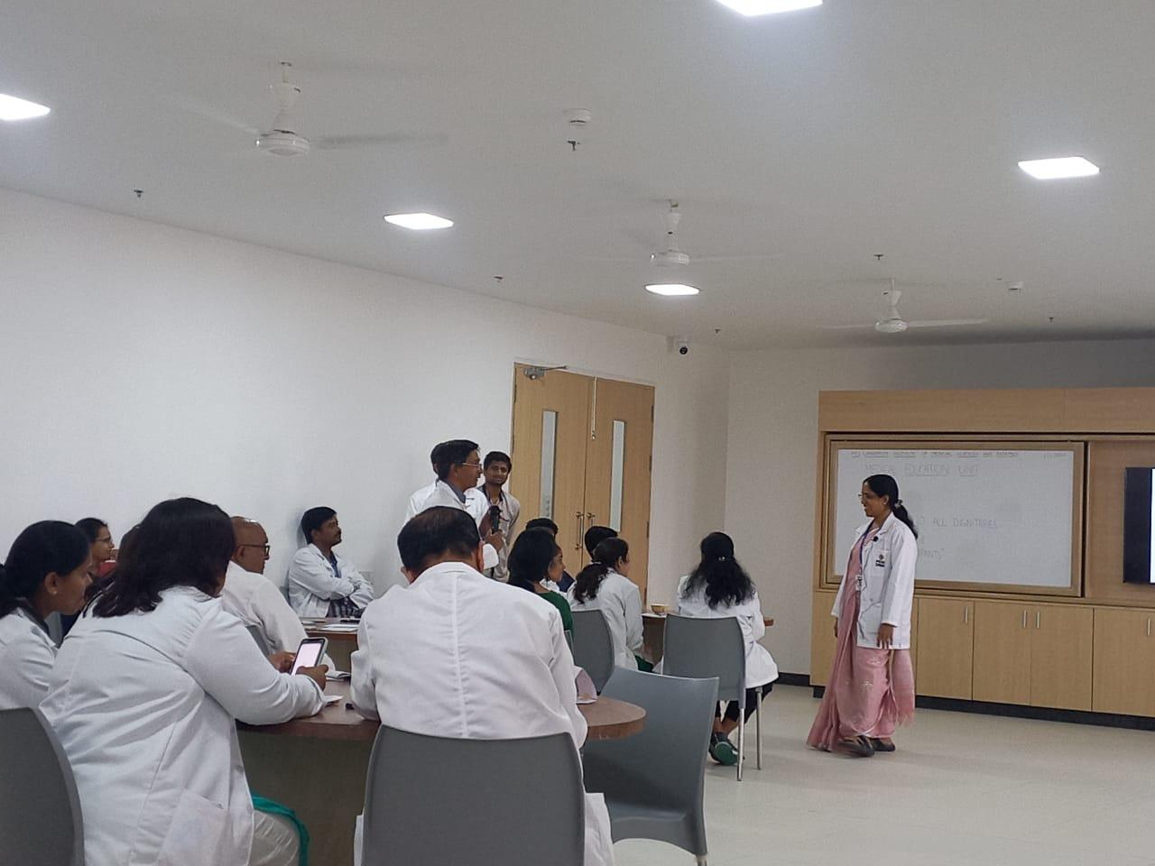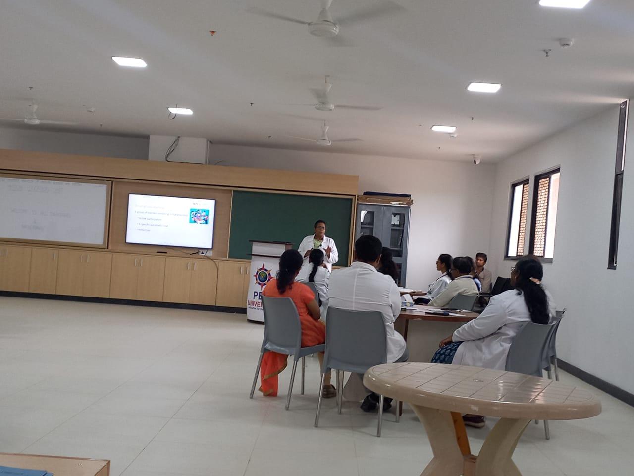 The orientation programme covered a wide range of topics related to competency based medical education (CBME). This included learning domains, principles of learning, teaching learning methods, developing objectives from competencies, selecting appropriate teaching learning methods for learning objectives, attitude Ethics and communication (AETCOM) skills, and assessment in CBME. Dr. Nagendra Prasad N in his introductory remarks spoke about the importance of formal training in medical education technology for training medical students. Dr. Shyma P shared insights into the domains of learning and its progressive levels, identification of predominant domains in each competency. Dr. Vijaya S elaborated on identification of appropriate large group teaching method and its size depending on the session objectives and how to make large group teaching interactive. Dr. Raksha K Hebbar highlighted the variability in size of a small group based on learning domain and objective. Dr. Anjali, explained the method of developing objectives for a given competency in the specific phase of the course with hands-on exercise. Dr. Prakash R spoke on the need for explicit teaching of attitudes, ethics and communication skills for the present generation of student doctors and the proposed modules for different phases of the course, the possible methods for their implementation. Dr. Nagendra Prasad N talked about the role of assessment in learning, methods of assessment and importance of feedback as part of continuous assessment. He also analyzed the different approaches in traditional assessment methods and competency-based assessment and their outcomes. The faculty orientation programme on medical education technology was organized by MEU in association with the Curriculum committee of PESUIMSR for the teaching faculty on December 1, 2023.