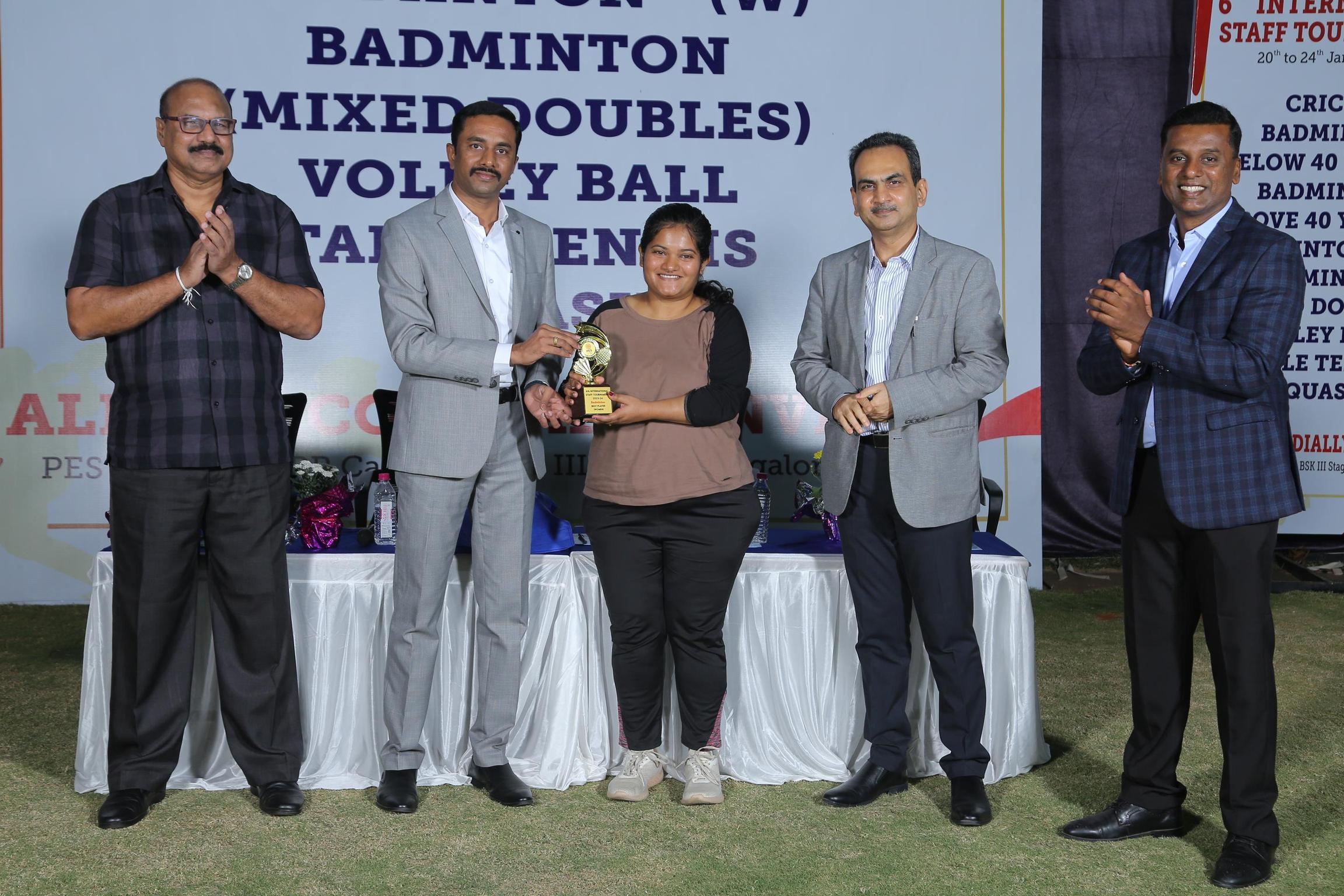 Badminton (above 40) men – Damodhar, BMSCE; Women - Vindhya, CIT Gubbi