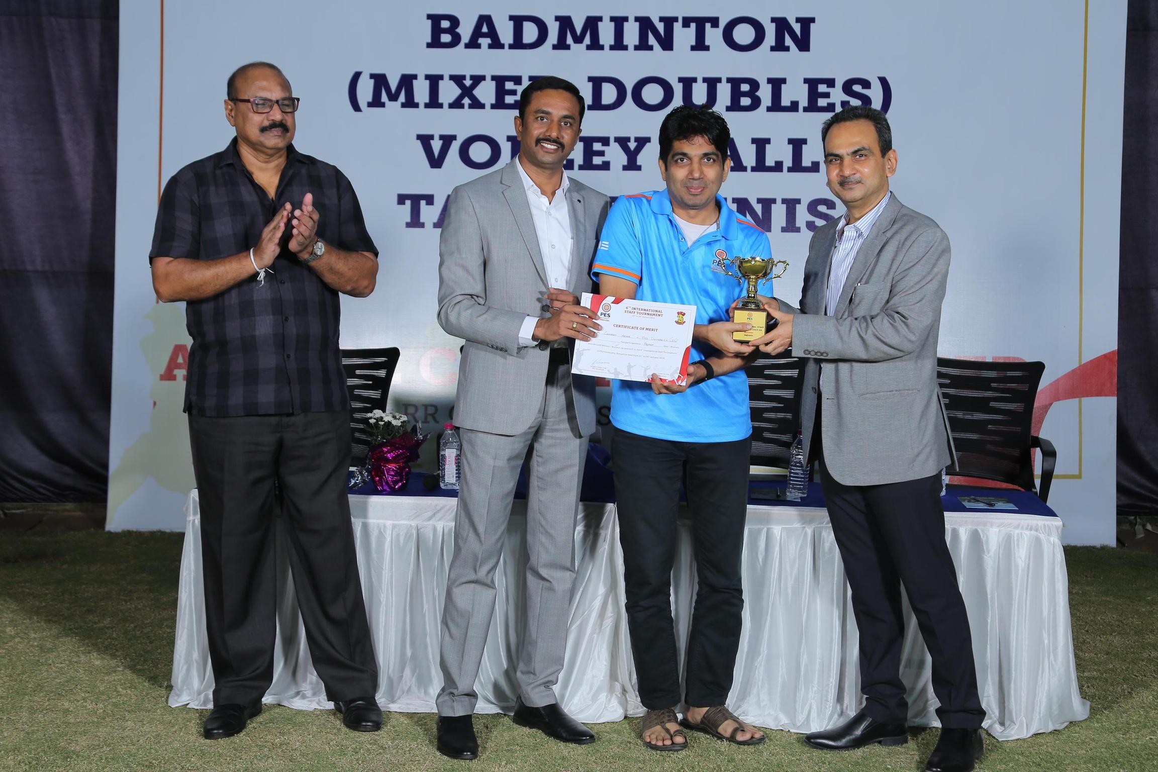 Badminton (above 40) Men: Winner - BMSCE; Runner-up – EWIT