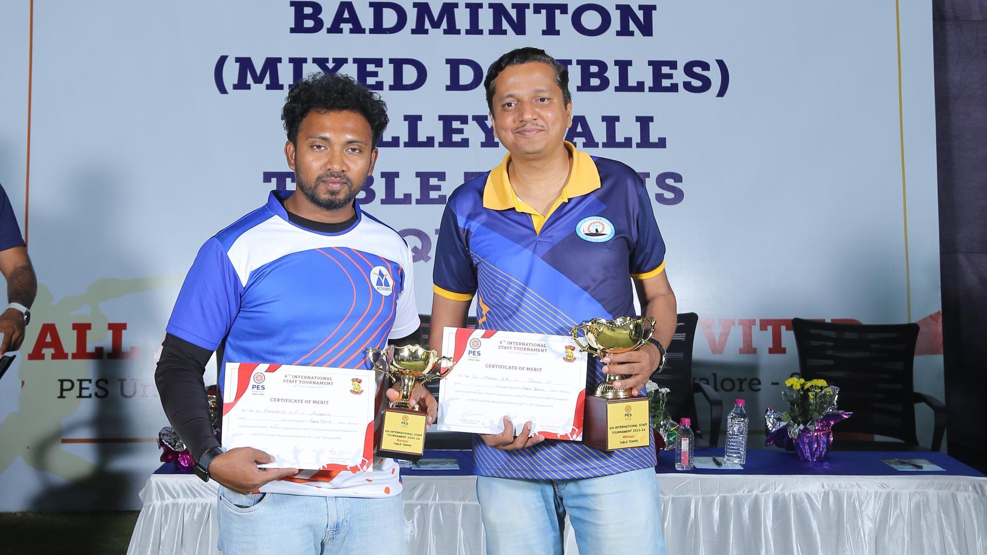 Table tennis Men: Winner - DR. Madhu B R, JYOTHI IT; Runner-up - Dr Prashanth KP, ACHARYA IT