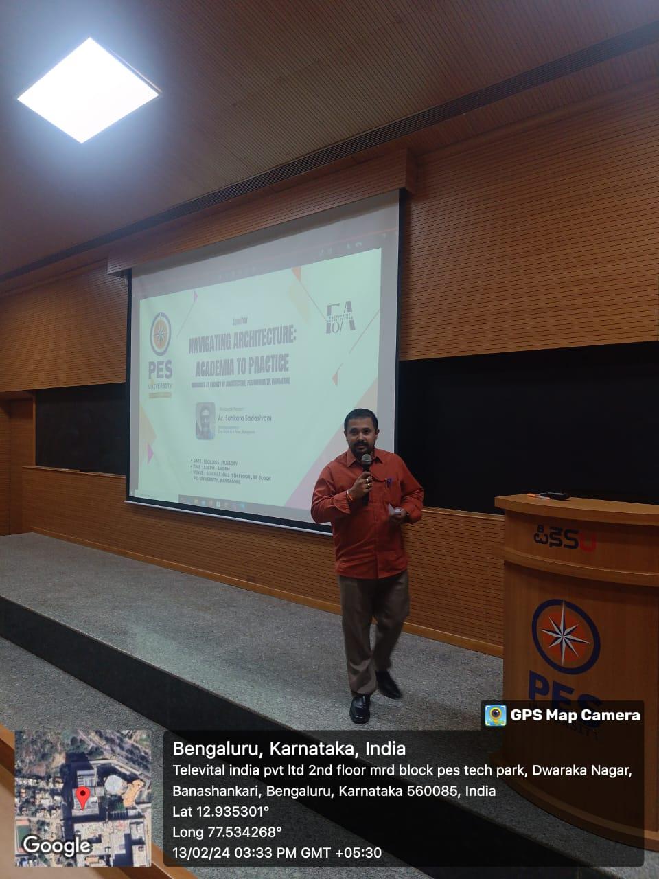 Continuous learning to adapt to market trends while cultivating a unique architectural style is key to growing a successful practice in the field of architecture. Architect Sankara Sadasivam provided valuable insights on transitioning from academia to architectural practice, focusing on the business and entrepreneurship aspects. The expert talk on Navigating Architecture - From Academic to Practice by architect Sankara Sadasivam of One Brick at a Time was held at RR campus on February 13, 2024.