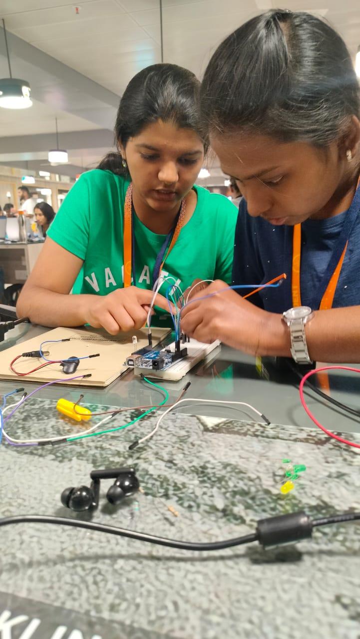 The second prize was won by a team of students, Nandita G, Keerthi Abeestitha Lakshmi Shettar, and Spoorthi Gaddi, from the second-semester Electronics and Communication Engineering. The team had developed an SOS button in a smartwatch that can communicate with the medical practitioners and families of the patient during emergency health issues away from home.