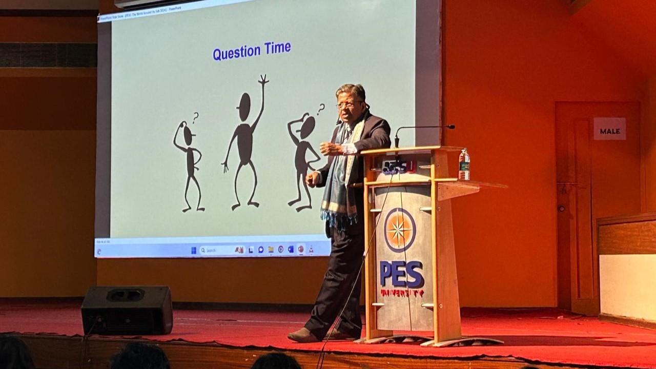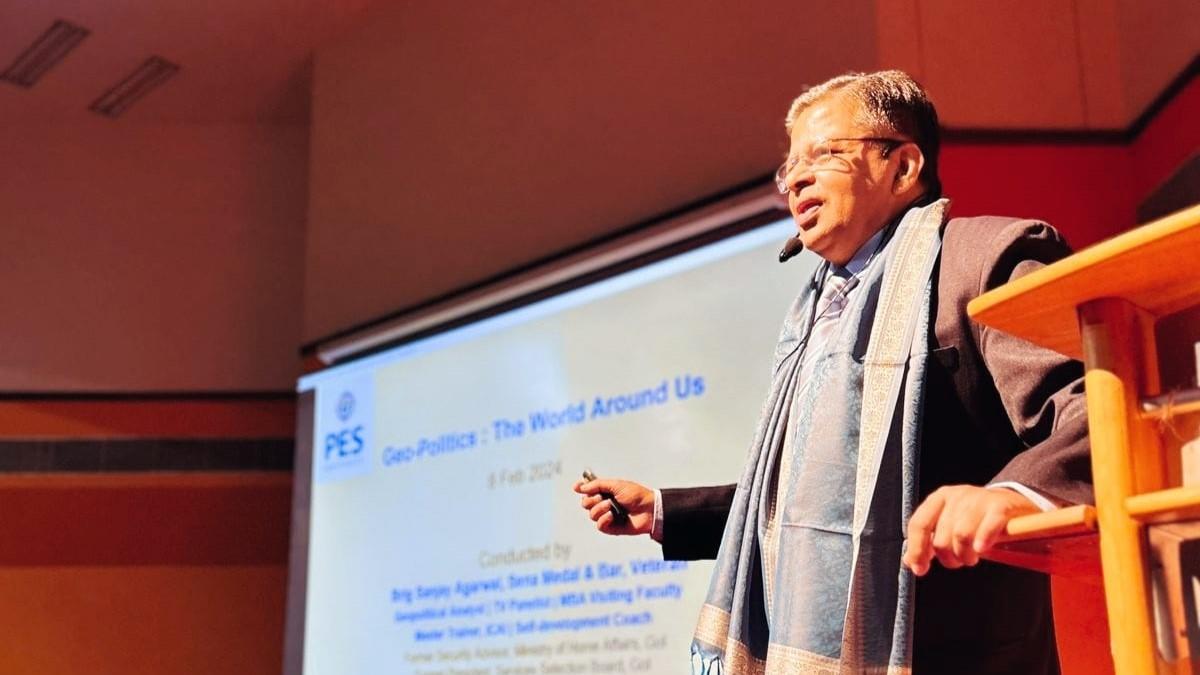 Brigadier Sanjay Agarwal, two time Sena Medal Winner and BAR veteran talked about geopolitics and self development for success in life. The workshop was organized by the Faculty of Management and Commerce at RR campus on February 8, 2024.