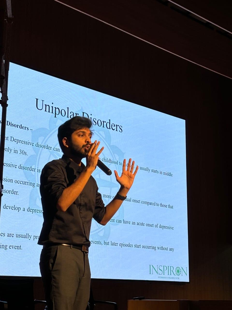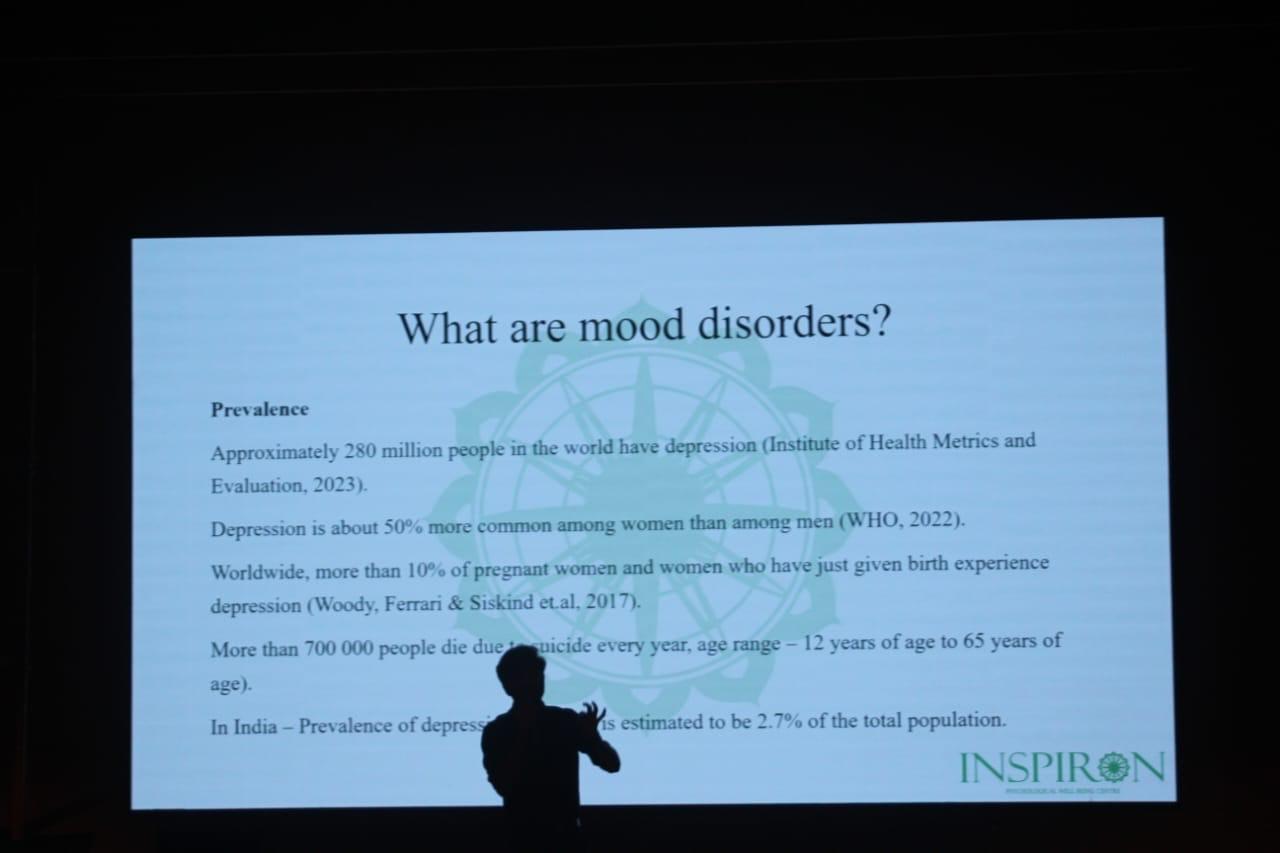 Mood disorders over an extended period of time affect people emotionally. The lecture by Mr Ahmed Asif, a counseling psychologist, discussed the biological aspects, causal factors and effects of mood disorders. He touched upon different aspects of Bipolar Affective Disorder and paranoia and discussed three case studies. The students undertook the exercise of formulating a prognosis and a treatment plan for some of the case studies. The interaction with Mr Ahmed Asif, a counseling psychologist at Inspiron Psychological Well-Being Centre, Corporate and Technology Head of Indiranagar Centre provided students with insights into the mental healthcare industry and the practice of Psychology. The Department of Psychology organized the guest lecture on Mood Disorders by Mr Ahmed Asif on February 16, 2024.