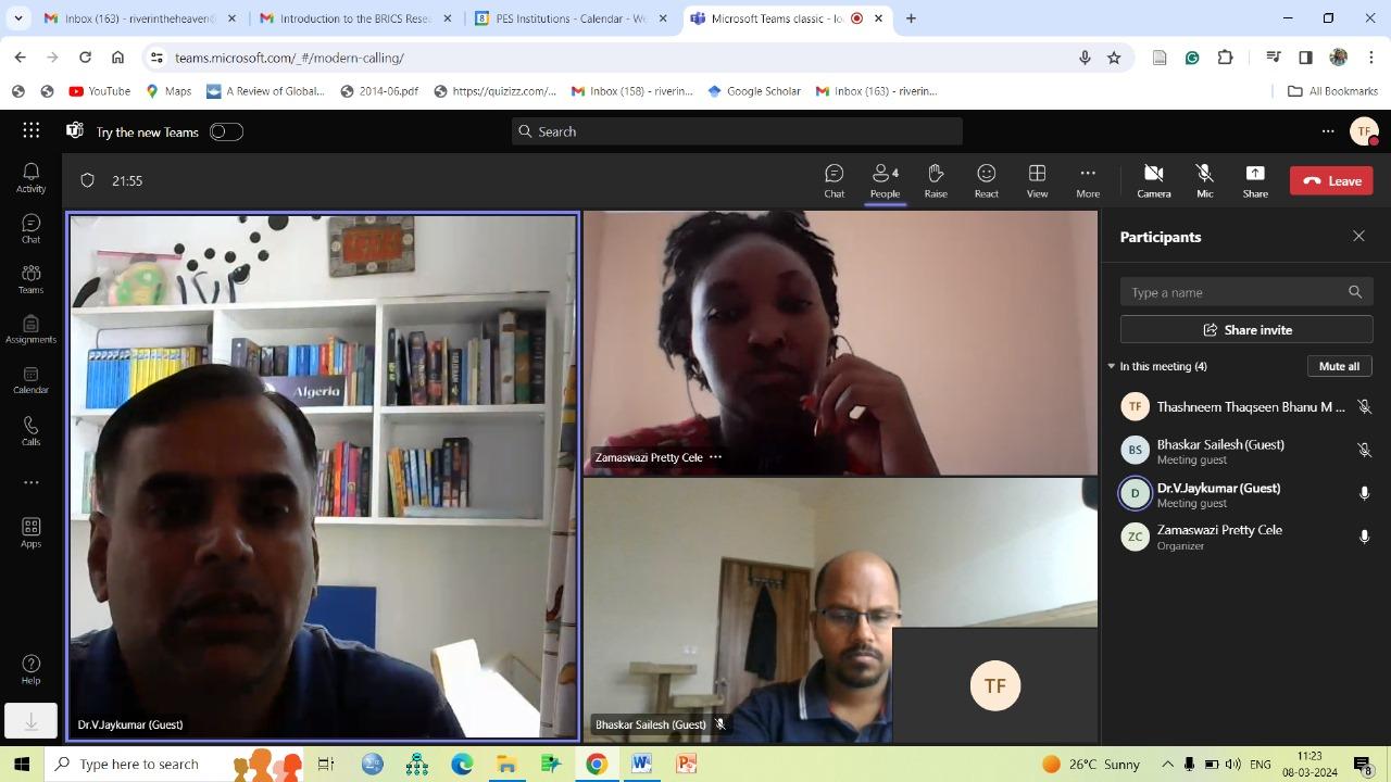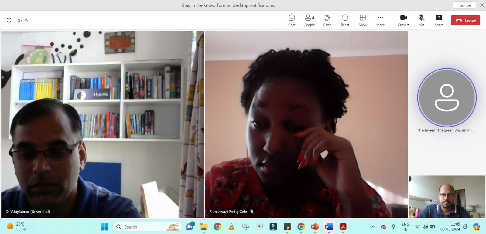 Collaboration among universities across BRICS nations in the areas of research documentation, conferences and other academic partnerships can bring forth new ideas. Prof. Zamaswazi Pretty Cele from the University of Durban, South Africa led the discussion to explore the opportunities in this field that includes initiating research dialogues and jointly publishing in Scopus indexed journals. The department of BBA HEM organized the preliminary discussion on promotion of research collaboration among universities of BRICS nations on March 8, 2024 at RR campus.