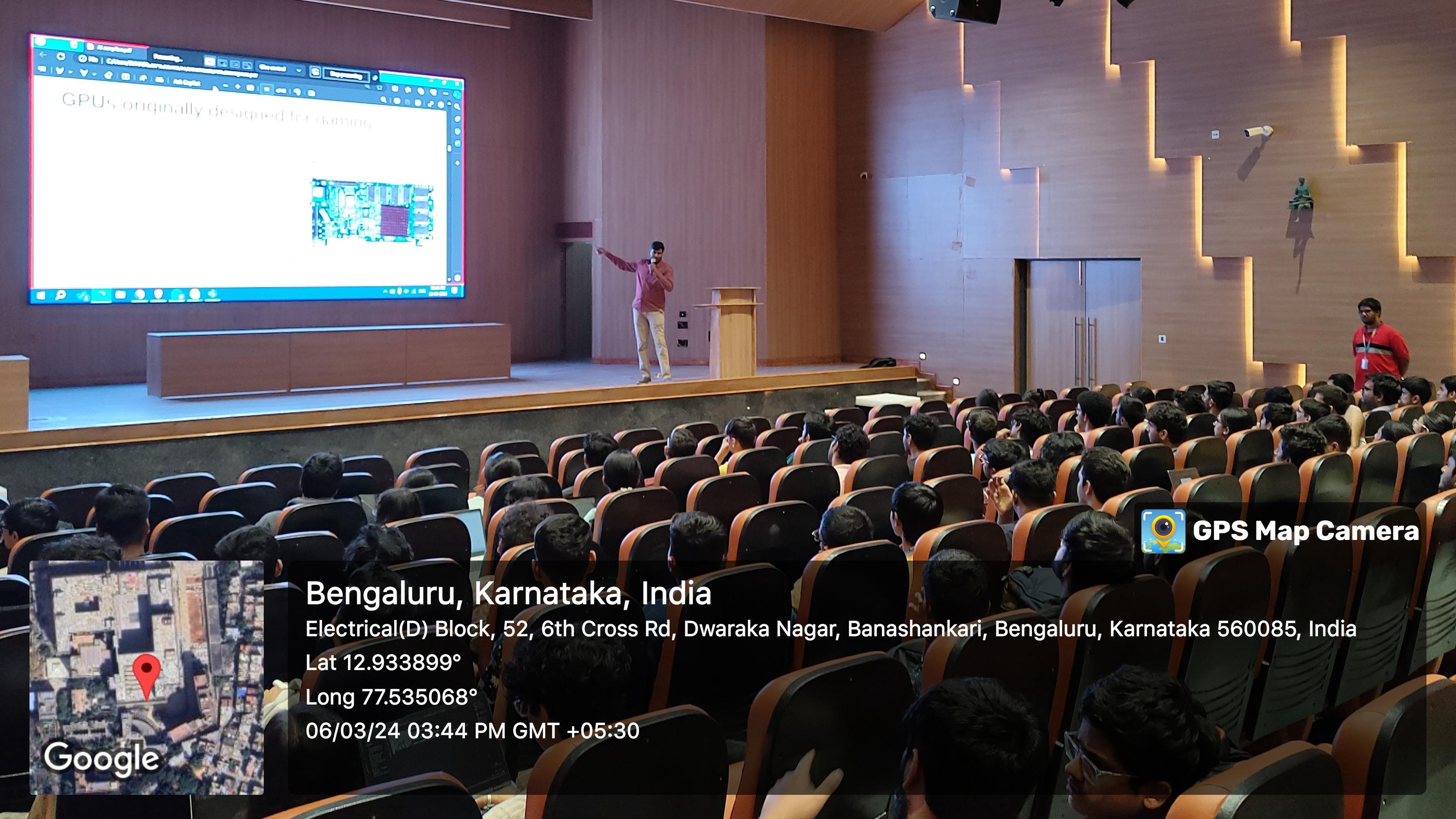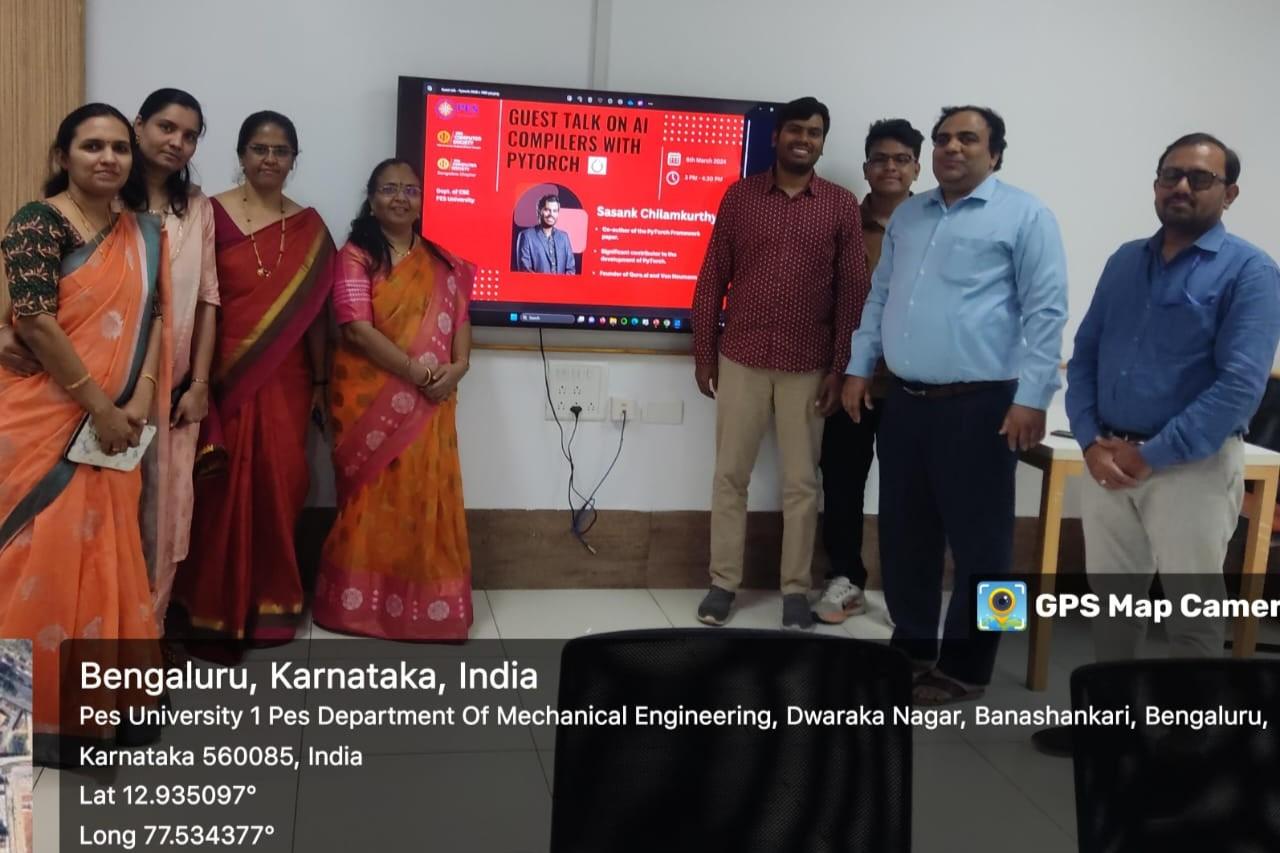The speaker, Sasank Chilamkurthy, took the participants through an in-depth exploration of the fundamental principles and advanced methodologies underpinning deep learning. The key role of Graphics Processing Units (GPUs) in facilitating the computational demands inherent in training complex neural network models was discussed. Through a comprehensive examination, participants gained insight into the architectural design of GPUs and their optimization for parallel processing tasks, particularly in the context of deep learning. The session provided a comprehensive overview of CUDA programming, a parallel computing platform and application programming interface (API) model developed by NVIDIA This entailed a detailed exploration of the hierarchical structure inherent in CUDA, comprising threads, blocks, and kernels, elucidating their respective roles in optimizing computation and memory management. The session covered comparative analysis, juxtaposing PyTorch against alternative deep learning frameworks such as OpenCV and TensorFlow. Through rigorous examination and empirical evidence, participants understood the unique advantages offered by PyTorch, including its flexibility, dynamic computational graph construction, and intuitive programming interface. The guest talk on AI Compilers with Pytorch by Sasank Chilamkurthy, co-founder and CTO of Qure.ai, a leading radiology AI company was organized by IEEE CS PESU on March 6, 2024 at RR campus.