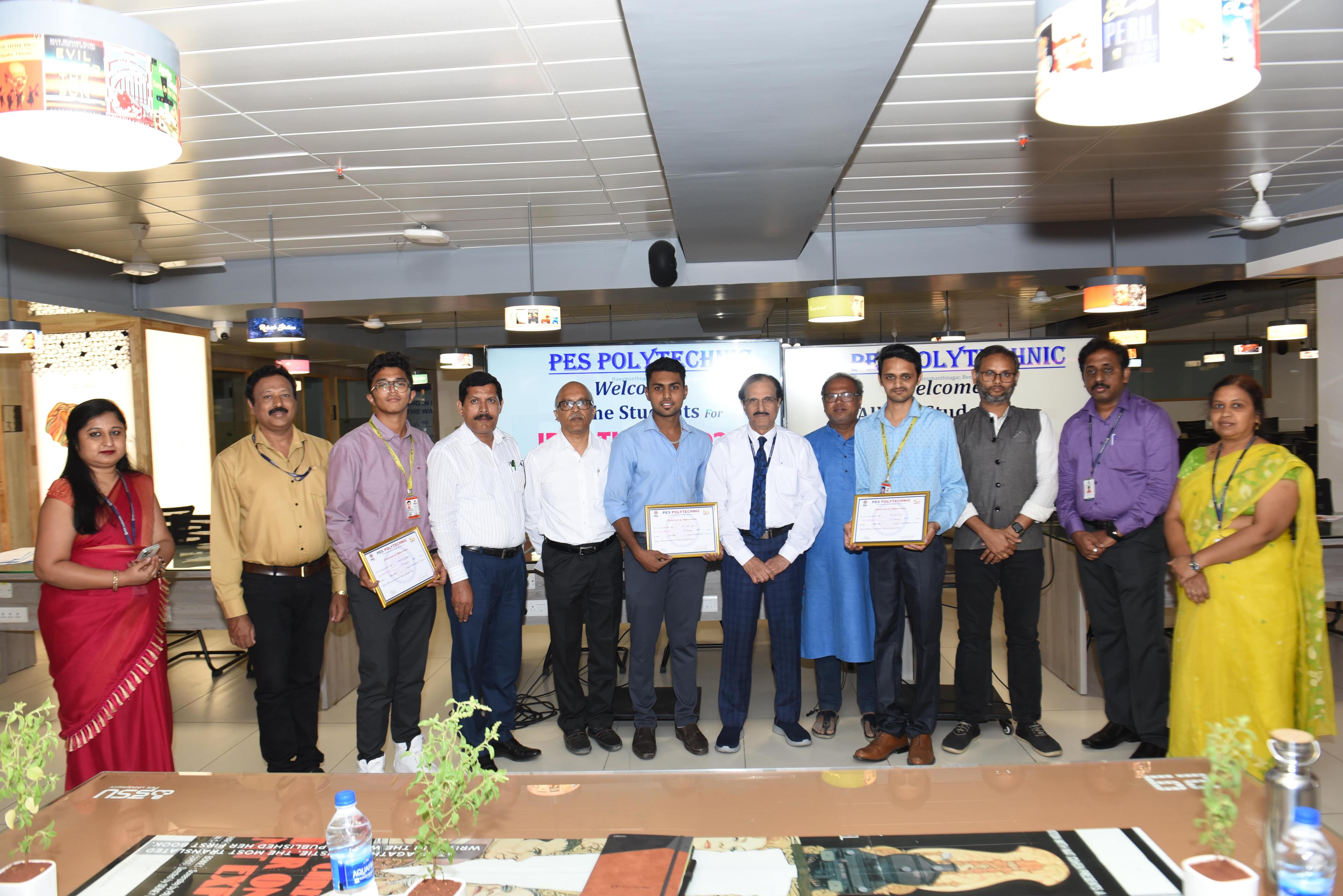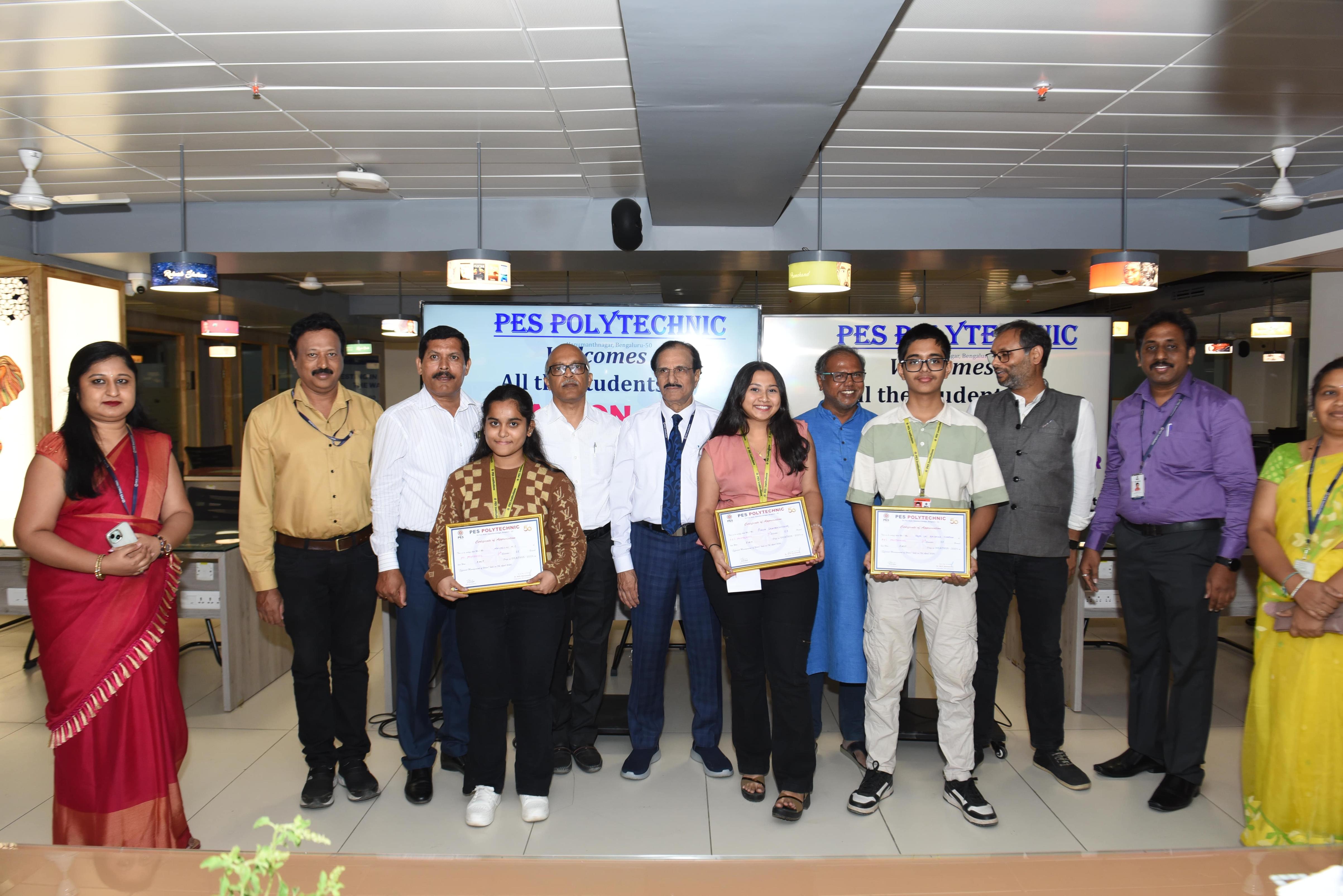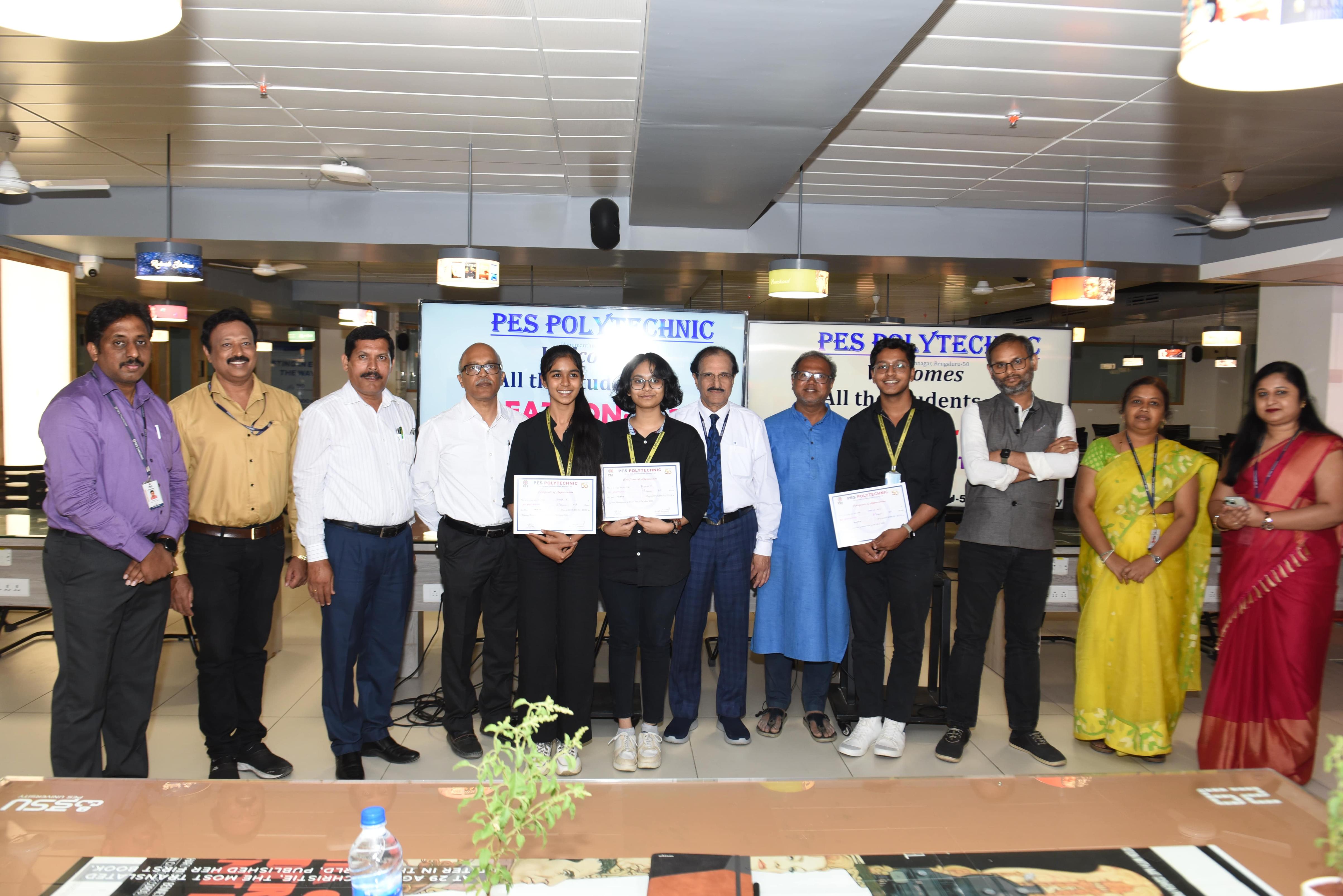Kum. Punya Chandrashekhar, Kum. Manasvini and Sri Sai Krishna Sharma of 4th Semester Computer Science students of PES Polytechnic won the first prize for their idea for an IOT-based water management system that will detect the leakage and help in reducing the leakage of water.