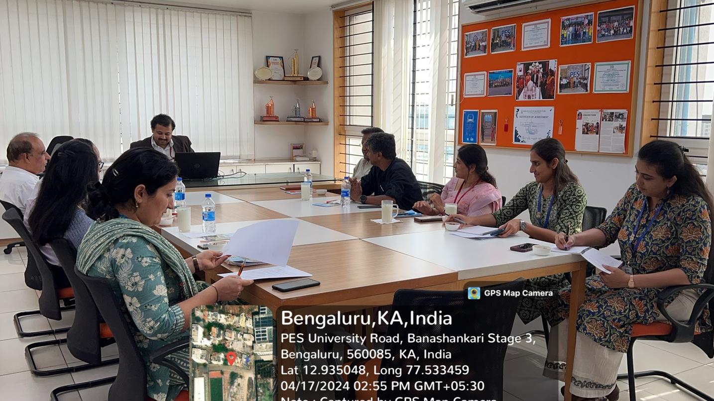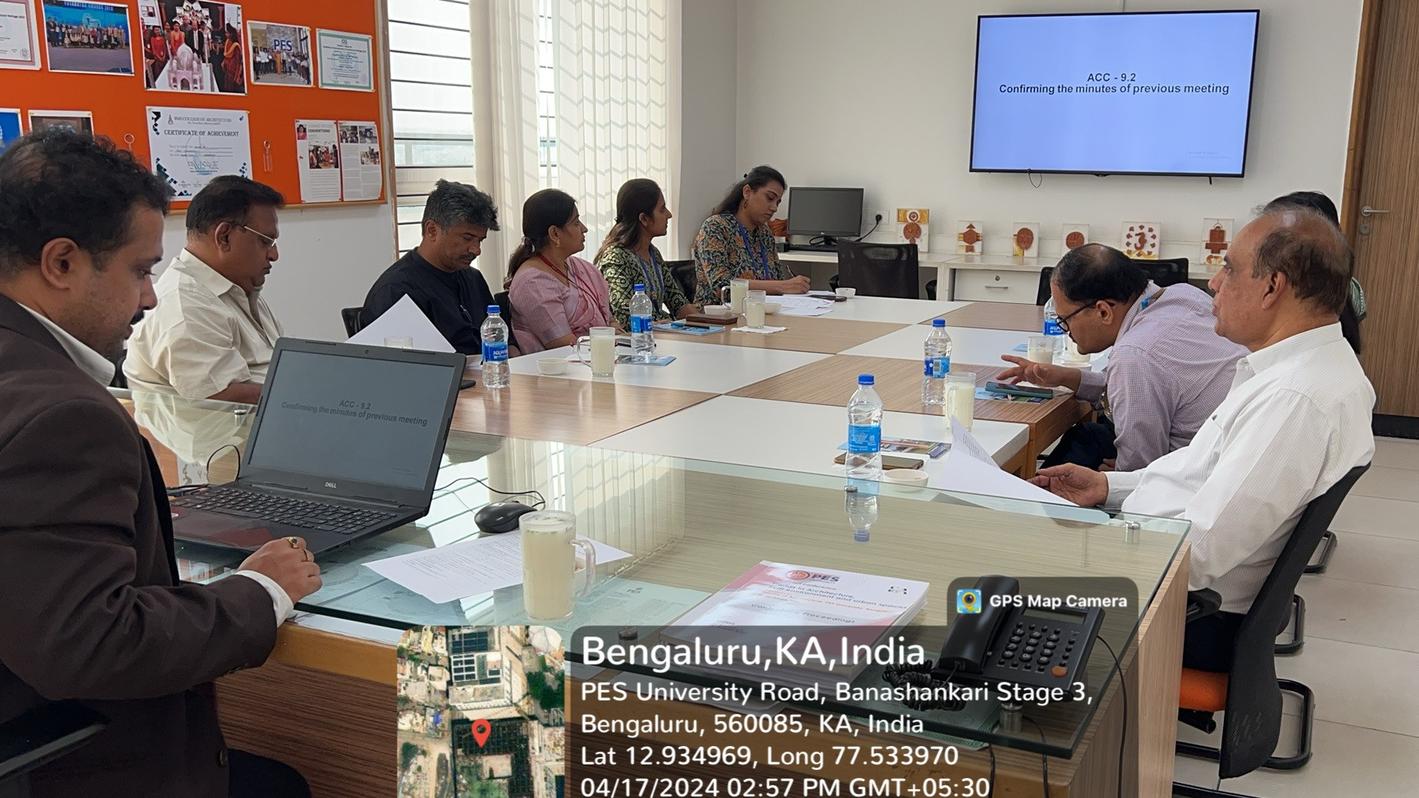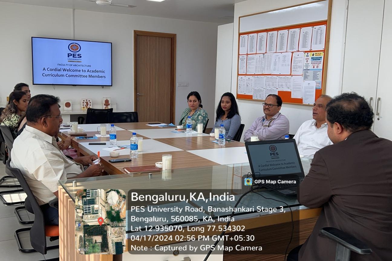The Academic Curriculum Committee meeting with Architect Sharath presented the planned syllabus for the upcoming academic year to a panel of practicing architects and external members Ar. Vidyadhar Wodeyar and Ar. Prasad, alumni Ar. Deeksha Kumar and internal members Dr. K. S. Sridhar, Registrar Chairperson, Dr. Karthik S, Controller of Examinations and faculty members. The valuable insights shared by the participants contributed to outlining a comprehensive and up-to-date curriculum in the meeting held on April 17, 2024 at RR campus.