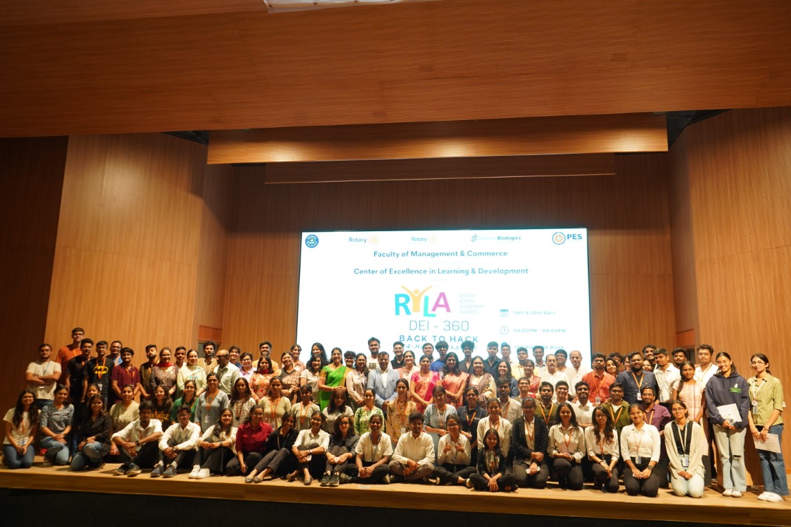 The 24-hour hackathon focused on tackling challenges related to Diversity, Equity, and Inclusion (DEI). The participating teams developed innovative solutions that fostered inclusive workplaces, promoting the well-being and advancement of underrepresented groups like women, minorities, and LGBTQIA+ individuals in organizations. The workshop on design thinking process led by the Mr. Chella Pandian Pitchai, global head of DEI at Biocon Biologics, guided participants through each stage of the design thinking process, equipping them with the tools and frameworks to translate abstract ideas into concrete solutions that address real-world DEI challenges. Through interactive exercises and discussions, participants learned to approach problems with empathy, think creatively, and develop innovative solutions. Mr. Pitchai led the session on storytelling that explored the power of narrative in crafting compelling pitches that resonate with audiences. Participants learned how to weave data and facts into stories that not only inform but also inspire action. These workshops prepared the participants for tackling the provided problem statements and developing innovative solutions that promote a more inclusive future. One of the teams built a prototype app for addressing digital inequality, providing access to technology for all demographics, and measures to combat this divide. Another team highlighted the importance of building inclusive policies, programs, and spaces to support the mental health and well-being of LGBTQIA+ individuals, thus addressing challenges such as stigma and social isolation. Another team discussed how community programs could be implemented to address socioeconomic inequalities and promote economic empowerment for marginalized groups. This team emphasized the importance of planning a course of action to chart the solution and drive the desired change, covering aspects from microfinance to raising awareness. Another team stressed the need to accelerate development at all levels and increase the representation of women on corporate boards while promoting the growth of women-led businesses. Another team highlighted the importance of addressing digital illiteracy, recognizing it as a barrier to inclusion. Another team focused on amplifying the voices of underrepresented groups through media and entertainment, presenting it as a way to challenge stereotypes and initiate change from the grassroots level. DEI 360 - Back To Hack! Ideathon was organized by the Faculty of Management and Commerce, Centre of Excellence in Learning and Development in collaboration with Rotary Youth Leadership Awards (RYLA), and Biocon Biologics on April 19-20, 2024 at RR campus.