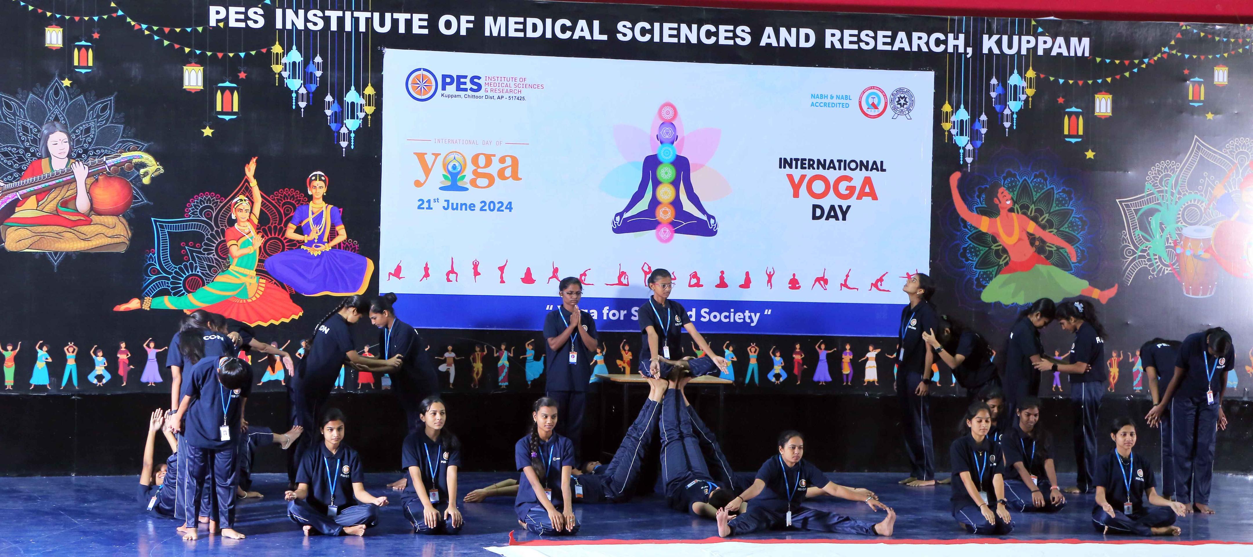 International Yoga Day celebrations at PES Medical College was marked by activities aimed at promoting physical and mental well-being. Practicing Yoga postures, breathing exercises and informative sessions highlighting the benefits of yoga in maintaining a healthy lifestyle and managing stress effectively were conducted. Dr. H R Krishna Rao, Dean & Principal of PES Medical College, emphasized the importance of integrating yoga into daily life for holistic health benefits and said, “Yoga not only enhances physical fitness but also fosters mental clarity and emotional balance.” The event that concluded with a vow to continue efforts in ensuring that yoga remains an integral part of the college’s wellness initiatives was held at Kuppam campus on June 21, 2024.