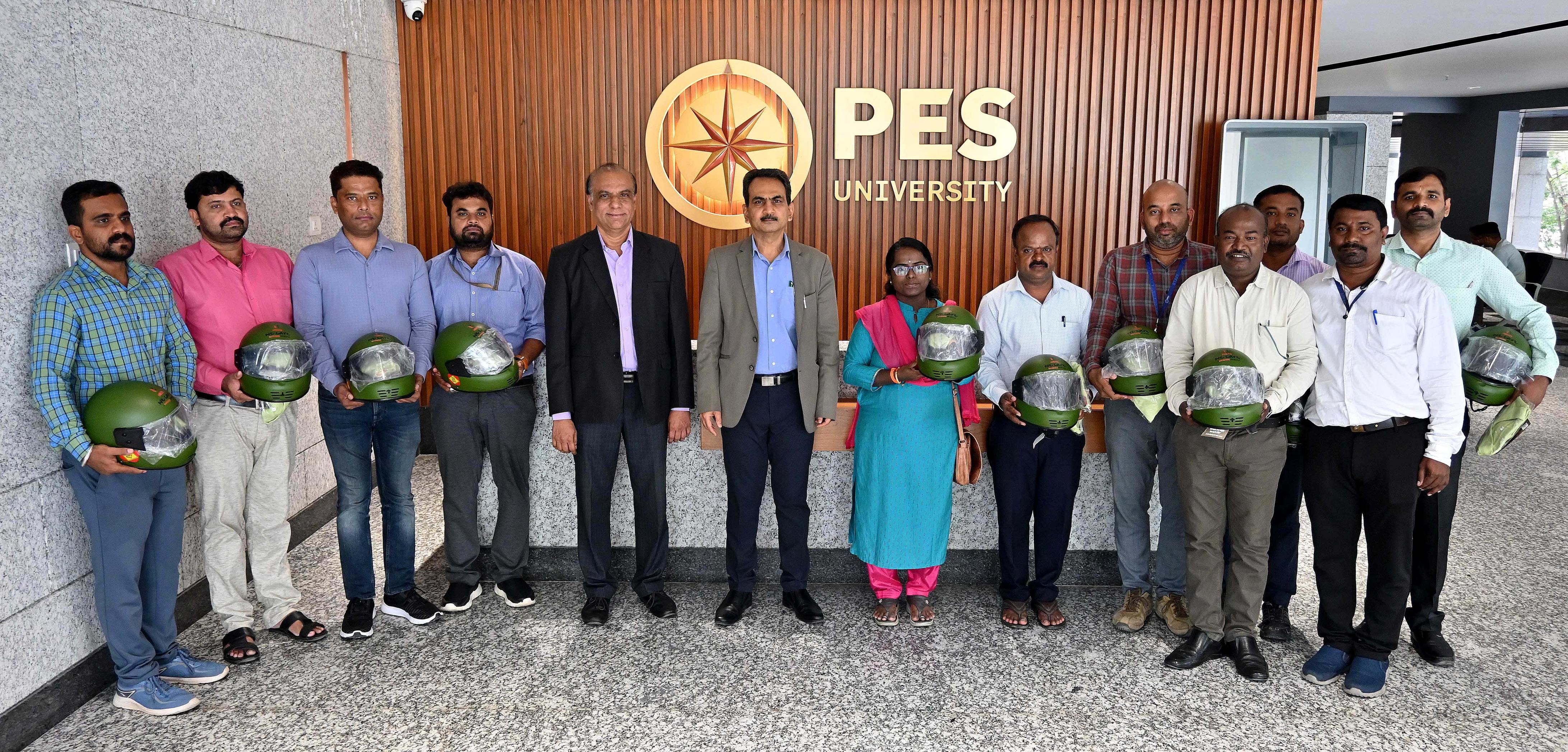 As part of the Ride Safe India campaign by the New Indian Express and Hero Moto Corp, PES Vice-Chancellor Dr. J. Surya Prasad distributed helmets to the Faculty and staff of the University. and urged them to promote helmet safety awareness amongst students. He cited statistics showing that most two-wheeler deaths occur without helmets and urged everyone to wear helmets while riding. Dr. K. S. Sridhar, Registrar of PES University, and the team from The New Indian Express were present on the occasion.