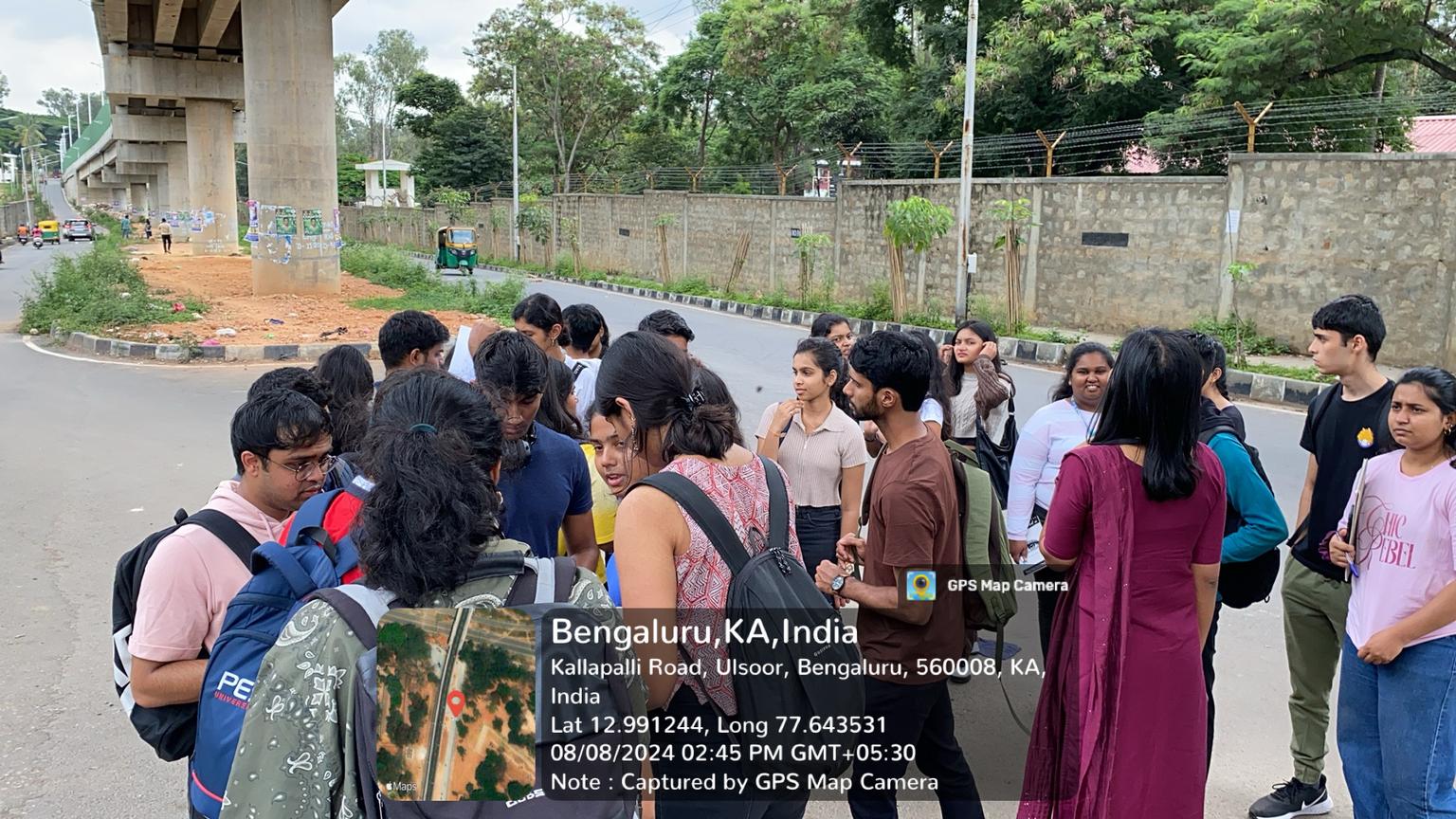 Students of architecture got an opportunity to observe one of the fast growing neighborhoods in Bengaluru which is emerging as a transport hub with a metro and railway station. The site visit to Baiyyappanahalli that focussed on ways that design can mitigate the unique issues faced by the busy area was organized by the Faculty of Architecture on August 8 , 2024.