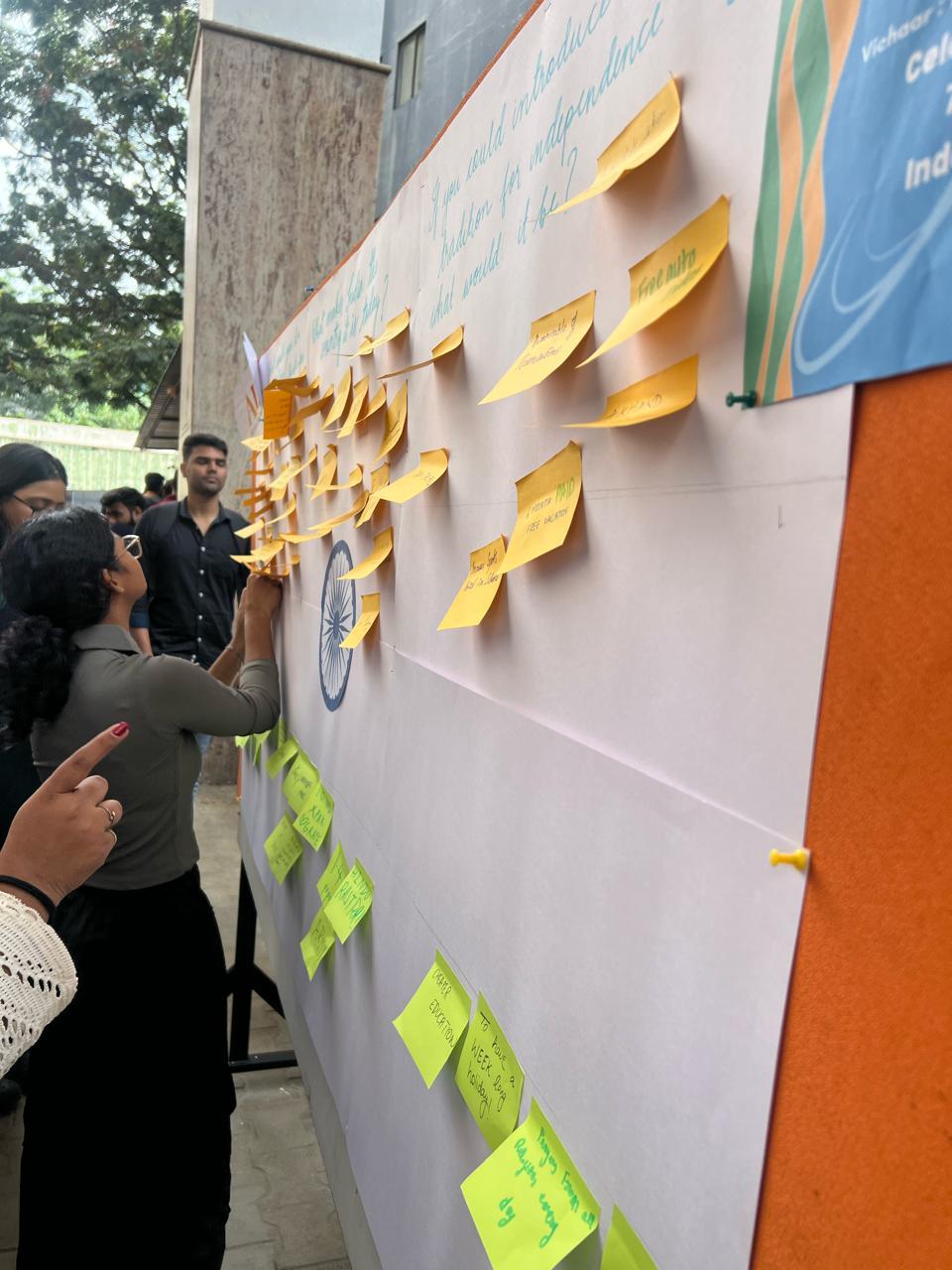 Vichaar, Let Your Thoughts Ignite, was about celebrating our 78th Independence Day by combining knowledge, creativity and national pride. The event engaged students in a meaningful and interactive way to capture the spirit of the occasion. The participants wrote answers to questions about our country, leadership and ideas on introducing a new tradition for independence day on orange and green sticky notes arranged to resemble the Indian tri color. AIKYA PES - AIKYA leadership forum organized Vichaar on August 14, 2024.