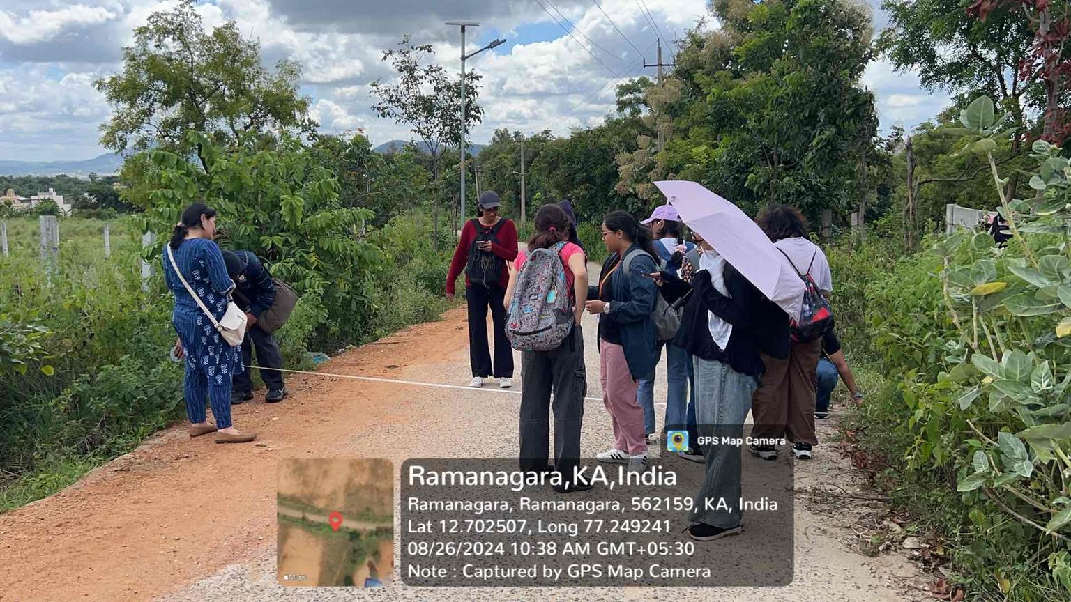 Students of architecture assessed the proposed site's topography and environment for sustainable and contextually appropriate design solutions. The visit explored the cultural and architectural influences from nearby Janapada Loka for potential incorporation into the school design. The students evaluated the relationship between the existing government school and the new site to foster community and educational continuity. The visit helped students to understand the social, economic, and cultural factors in a rural context to inform a design that is both functional and culturally sensitive. The analysis by students highlighted opportunities for sustainable and culturally responsive design. The proposed design approach incorporated elements of local heritage, inspired by the proximity to Janapada Loka. The students learnt that strategic integration of the new school with the existing government school is key to enhancing educational offerings in the area. The student inferred that a design proposal that is sensitive to the local community's cultural and educational needs, ensuring relevance and sustainability would be ideal. As part of the Design course, the visit to a proposed site for a rural secondary school adjacent to a government school and Janapada Loka in Bangalore on August 26, 2024 was organized by the department of Architecture.