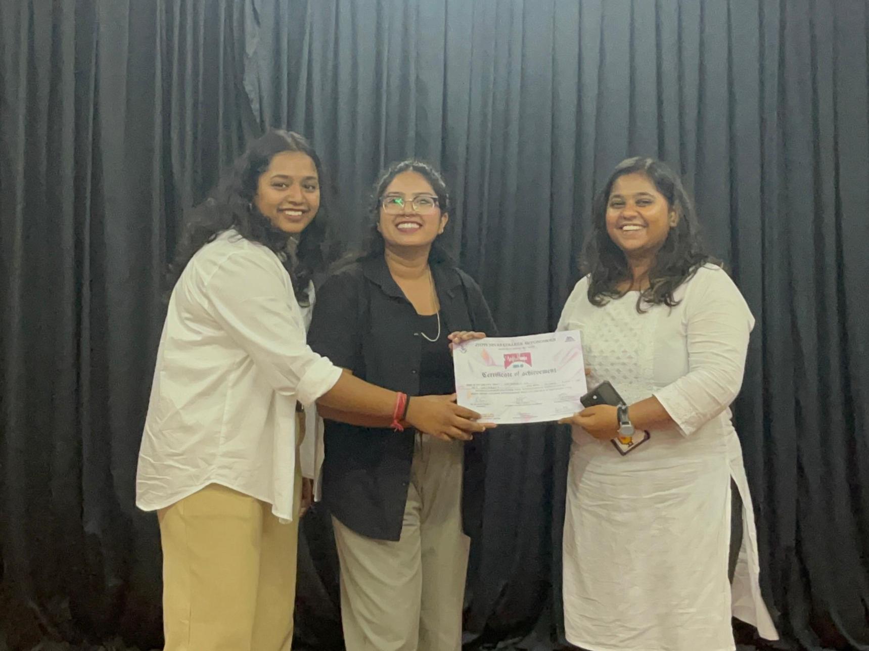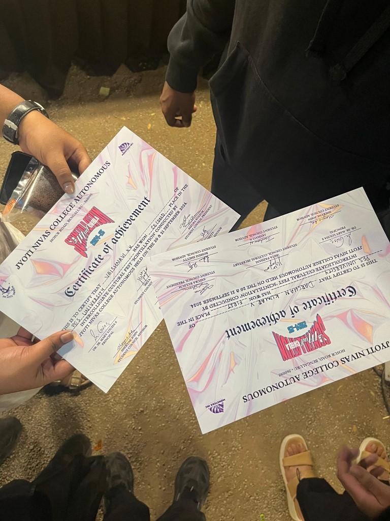 Team Nautanki, the drama club secured first and second place in mono acting and first place in stand-up comedy at Scintillation 2024. The intercollegiate cultural fest featuring performances, music, dance, fashion shows and more was organized by Jyoti Nivas College on September 20-21, 2024.