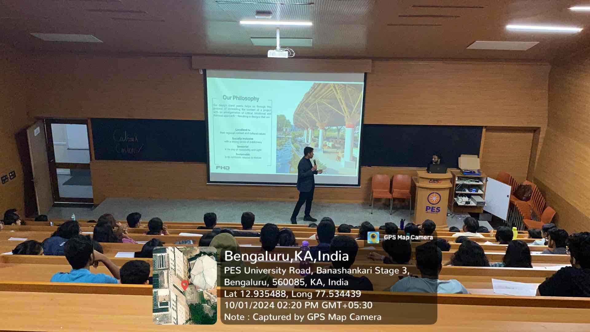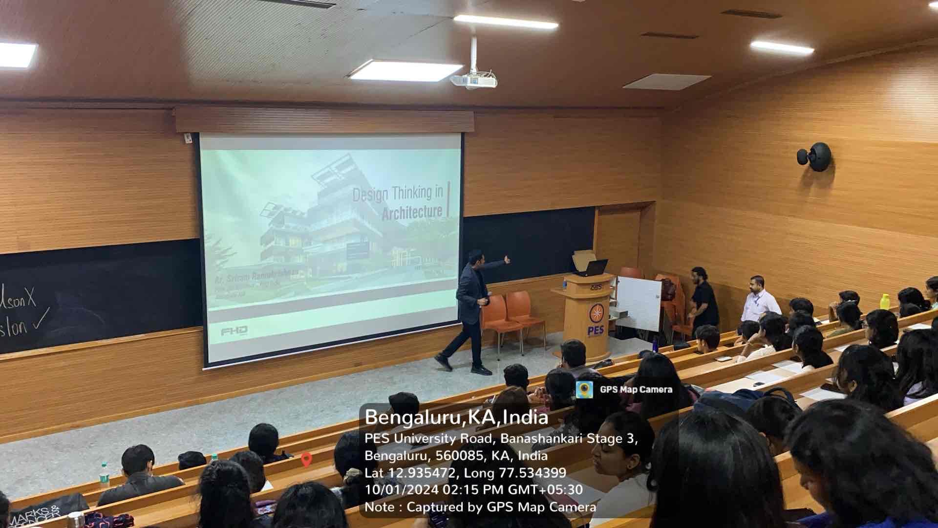 Architect Sriram Ramakrishnan, Principal Architect at FHD India shared insights about sustainable design and practical solutions in architecture, drawing from his extensive experience of working on projects across five countries and India. The workshop, Sustainability Breaking the Boundaries was organized by the faculty of architecture and held on October 1, 2024 at RR campus.