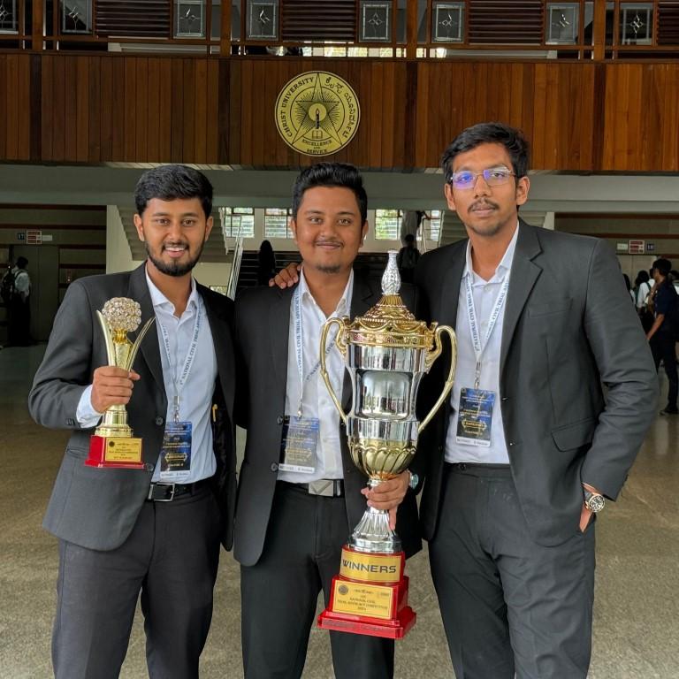 The team of Raghunandan S, Shreyas S and Vasista R displayed exceptional legal acumen and advocacy skills to emerge as the champions at 1st National Civil Trial Advocacy Competition 2024 hosted by Christ University Bangalore from September 24-26, 2024. The final rounds of the competition were evaluated by the esteemed judicature of Mr N. Kumar, retired Judge, High Court of Karnataka, Mr. Arjun Perikal, Disputes, Partner Shardul Amarchand Mangaldas and Mr Malhar Kulkarni, retired judge of district court.