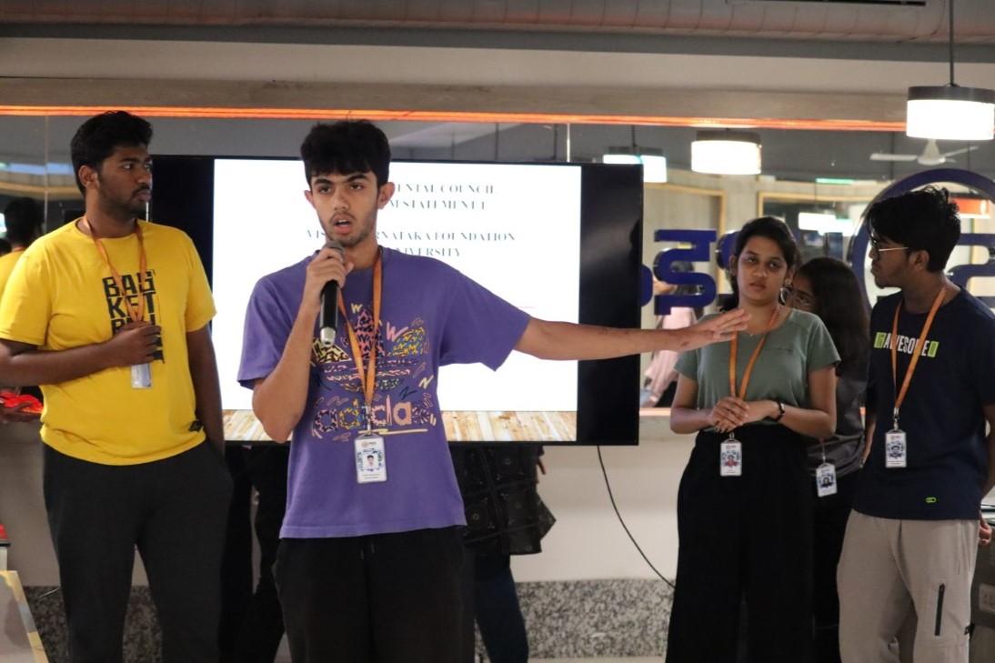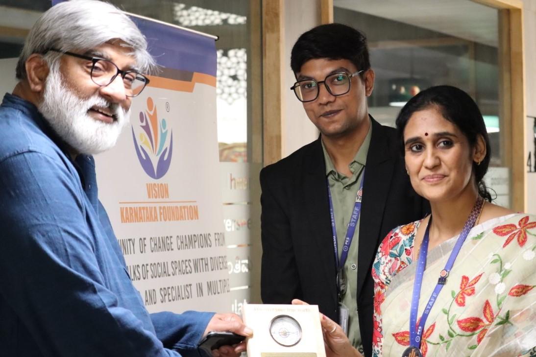 The 24-hour Hackathon featured over thirty five teams of students working on real-world problem statements focusing on Karnataka’s socio-economic and environmental challenges. The event was structured to include workshops, mentoring sessions, and presentations, ensuring that the participants had a comprehensive understanding of the context. The workshops were conducted by industry experts and faculty on JMP/Excel and PowerBI for data analysis and visualization. Mentoring sessions provided by experts from Vision Karnataka Foundation and PES faculty ensured that each team received guidance tailored to their problem statement. The participating teams demonstrated innovative solutions that blended data-driven analysis and practical insights. The final presentations were evaluated by a panel of experts, including representatives from Vision Karnataka Foundation: Mr. Nandakishor K, Executive Member; Ms. Anita Rao, Senior Advisor MSME; Mr. Ramasheshu, Brand Consultant and Dr. B.R. Balagangadharan, Chief Scientific Officer, Karnataka State Pollution Control Board. The 24 hour Hack.AI Hackathon was organized by Department of BBA in Business Analytics and Center of Excellence in Learning and Development in association with Vision Karnataka Foundation on October 4-5, 2024 at RR campus.