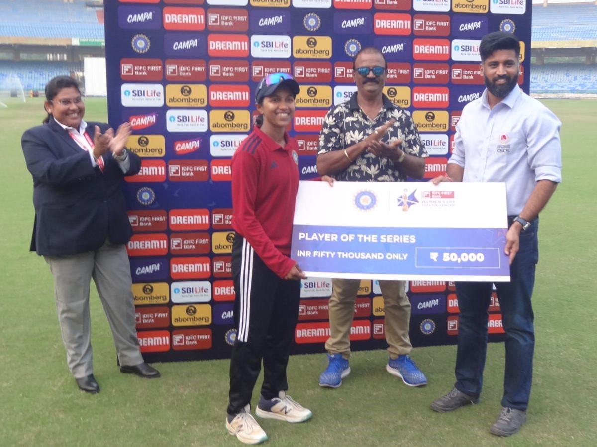 Niki Prasad made it to Karnataka Senior Women's T20 Squad for the tournament held in October 2024. She bagged a place on India U19 Team A for the Challengers Trophy held in October at Raipur. She captained the trophy winning side and scored the highest runs of 162, won two player of the match awards and bagged player of the series in the Challengers trophy. She captained India U19 team B for the triangular Series against South Africa held from November 29 to December 12, 2024. Niki was selected to captain India in the Under 19 squad for ACC Women's Under 19 Asia Cup, held from December 15-22 2024 at Malaysia. Niki is in her first semester of BBA in Sports management program. Roshini Kiran made it to Karnataka Senior Women's T20 Squad for the tournament held in the month of October 2024. Roshini, student of fifth semester in BBA Sports management program bagged a place in the squad for Karnataka Senior Women's One Dayers Trophy held in December 2024. Vishal Onat, a student of fifth semester in BBA Sports management program was selected for KSCA team for the Thimmappaiah Trophy held from September 1-25, 2024 and KSCA U23 team for the 4 Dayer trophy held from October 13 - November 13, 2024.