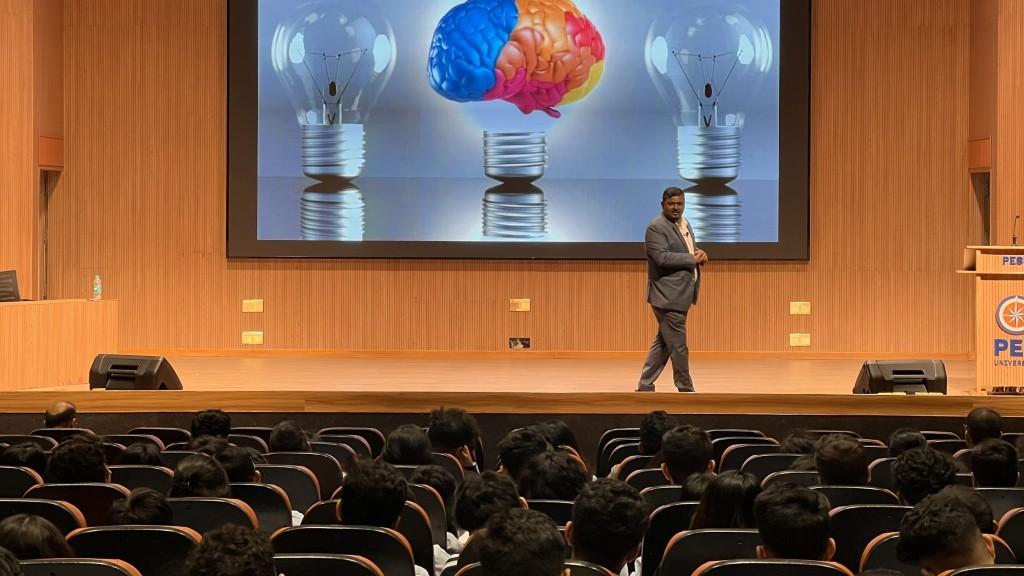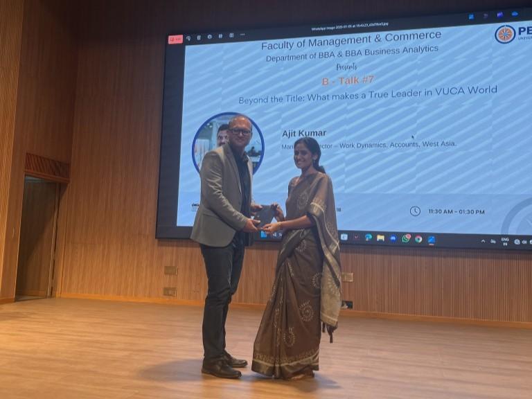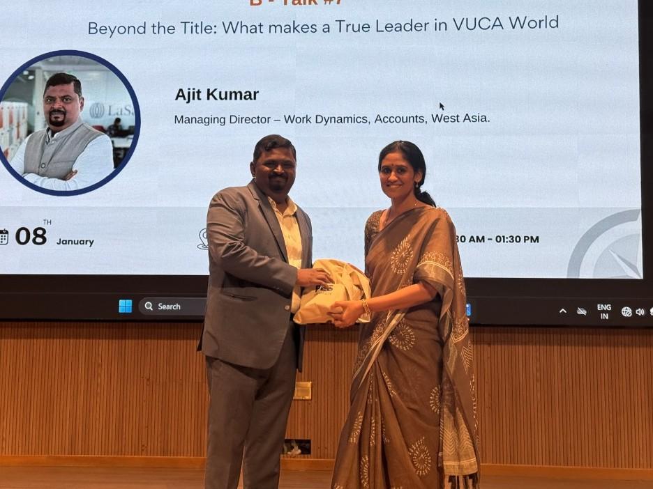 The talk by Ajit Kumar, Managing Director at Work Dynamics delved into the rapid evolution of the world, highlighting disruptions in traditional business models and transformations across industries. He cited examples of introduction of artificial meat to the food market, technological advancements in healthcare of DNA modification, and innovations in banking systems. The concept of VUCA—Volatility, Uncertainty, Complexity, and Ambiguity was a focal point, illustrated by events such as the stock market crash and Apple’s collaboration with Intel. The discussion addressed key questions such as what leaders do in a VUCA environment, whether hierarchy functions effectively under these conditions, and how leadership adapts to VUCA. Department of BBA and BBA (Business Analytics) hosted the educational B talk series on Beyond the Title: What Makes a True Leader in VUCA World, at RR campus on January 8, 2025.