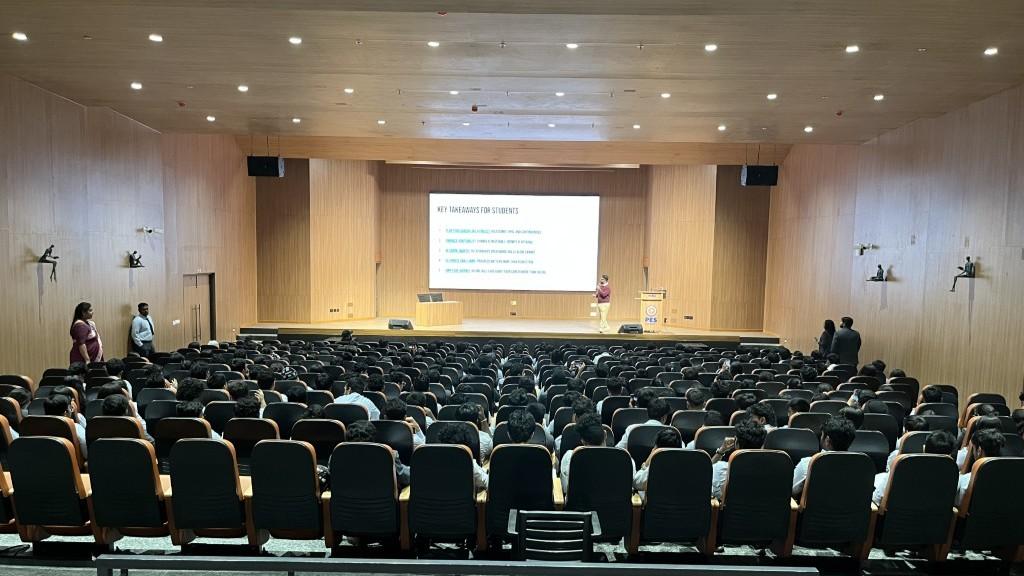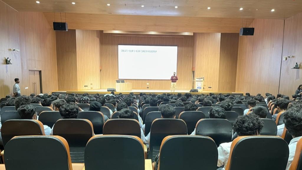 Career success requires planning, adaptability, and continuous learning. The speaker, Adithya M highlighted that taking control of one's career early can make a significant impact on long-term success. He explained how, "No one else is the CEO of your career except you." He emphasized that while change is inevitable, growth is a choice individuals need to take ownership of their professional journeys. The career roadmap follows structured phases—discovering interests, setting goals, building skills, tracking progress, and celebrating achievements. A five-year strategic approach would include industry exploration, mentorship, internships, mastering industry tools, and networking to secure dream jobs. He stressed the power of LinkedIn for career growth and highlighted essential skills like digital literacy, emotional intelligence, critical thinking, and adaptability to thrive in an evolving job market. Department of BBA and BBA (Business Analytics) hosted the educational B talk series on The Ultimate Project: Managing your own Career by Adithya M, alumnus of PES and Head of Project Management at LUXEVEDA on January 29, 2025 at RR campus.
