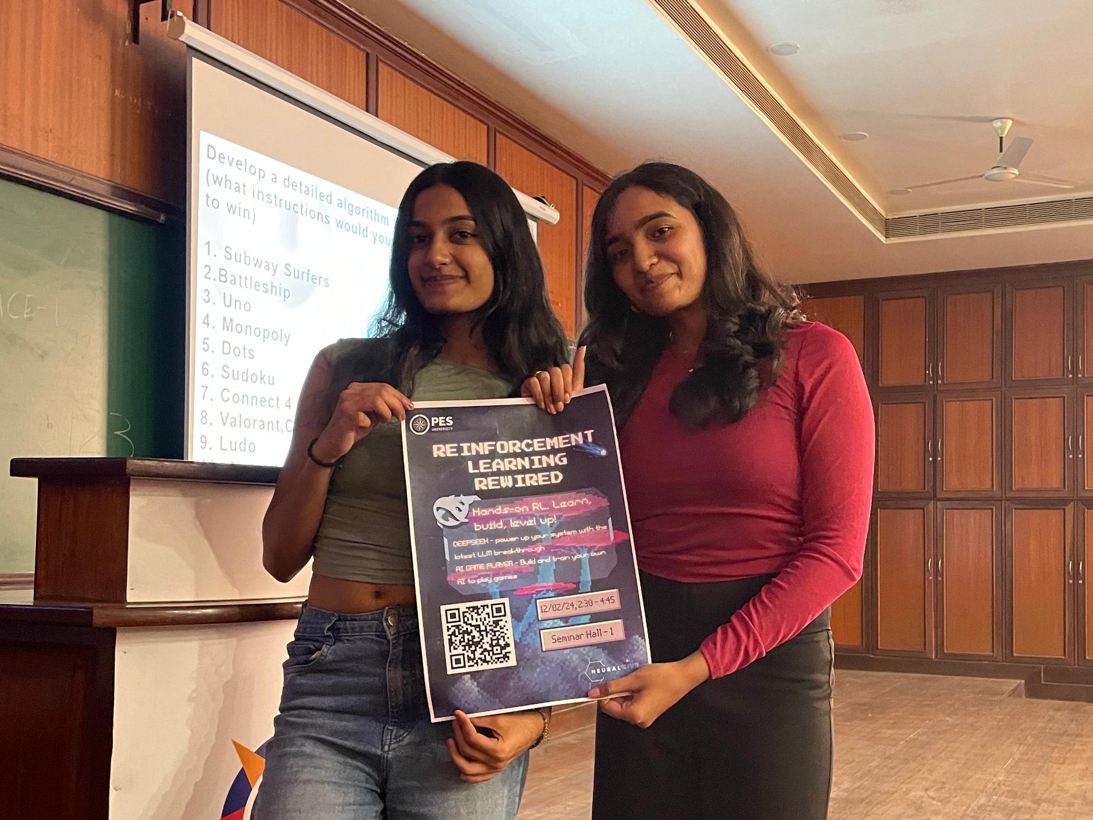 Participants were introduced to the core concepts of RL, understanding how agents learn through trial and error. The session also included a guided tutorial on DeepSeek, where attendees installed and ran a DeepSeek model on their local machines, ensuring they could experiment offline. Participants applied their knowledge to build a reinforcement learning based AI gaming agent. This hands-on segment allowed them to implement RL techniques in a real-world scenario, deepening their understanding through practical experience. The Neural Hive club at PES University successfully organized Reinforcement Learning Rewired, a hands-on workshop on February 12, 2025 at RR campus.